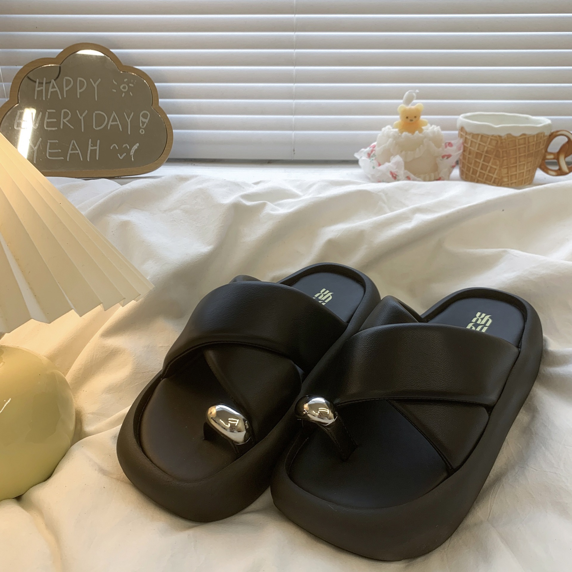 여성용 두꺼운 밑창 슬리퍼 2025 여름 새로운 스타일의 고급 패션 슬립온 인터넷 연예인 프렌치 비치 샌들스토어 가기