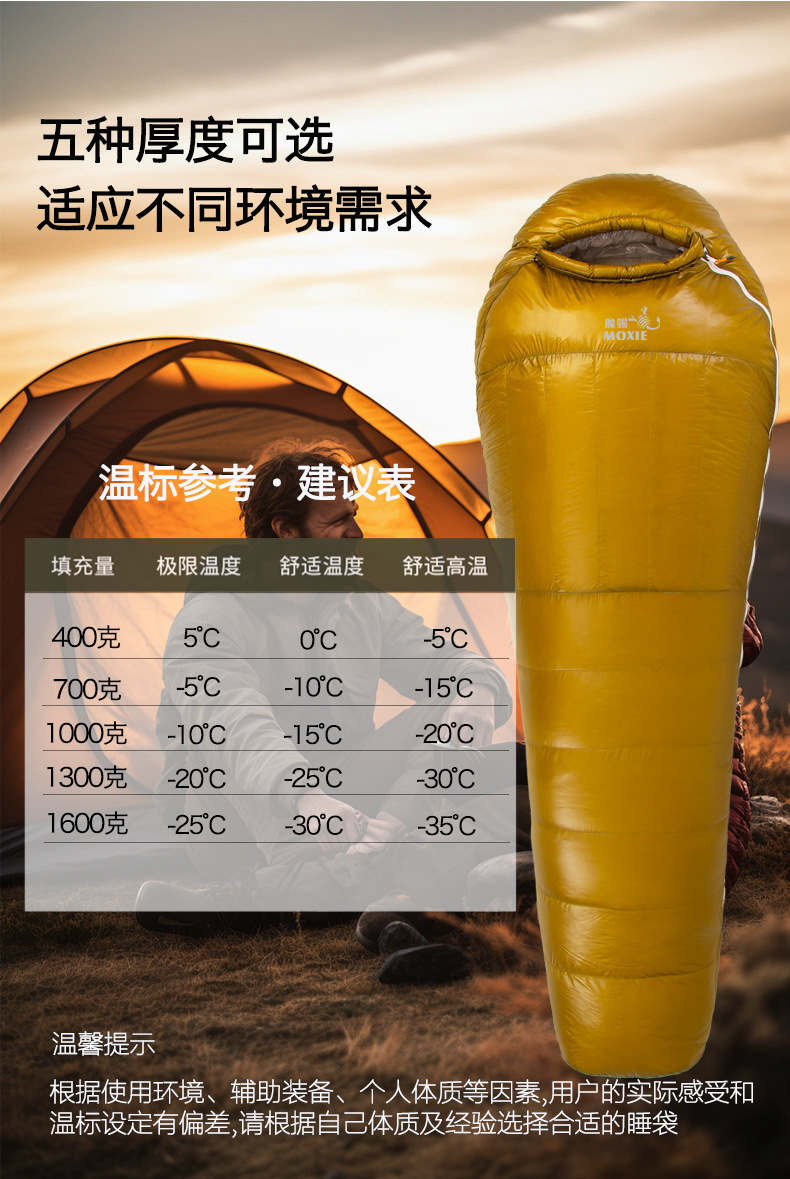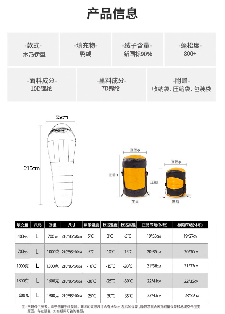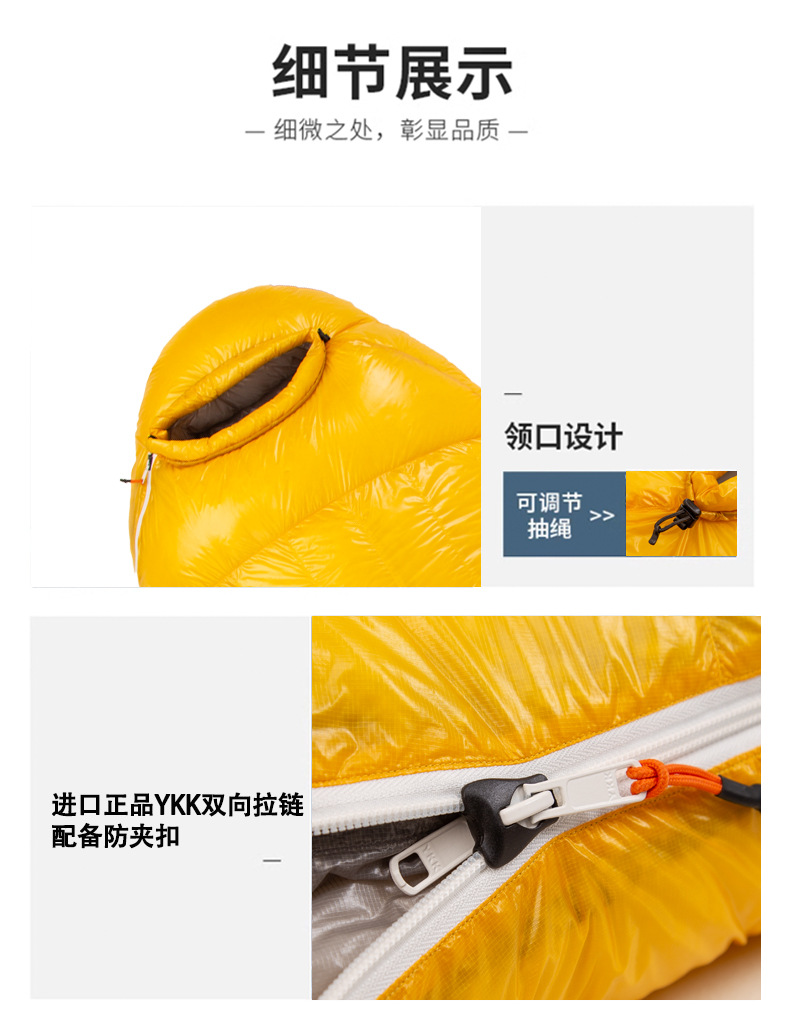 다운 침낭 봄과 가을 국경 간 경량 침낭 야외 휴대용 성인 캠핑 구스 다운 미라 침낭