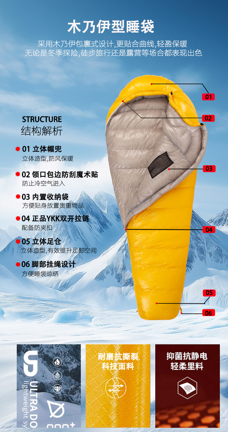 다운 침낭 봄과 가을 국경 간 경량 침낭 야외 휴대용 성인 캠핑 구스 다운 미라 침낭스토어 가기