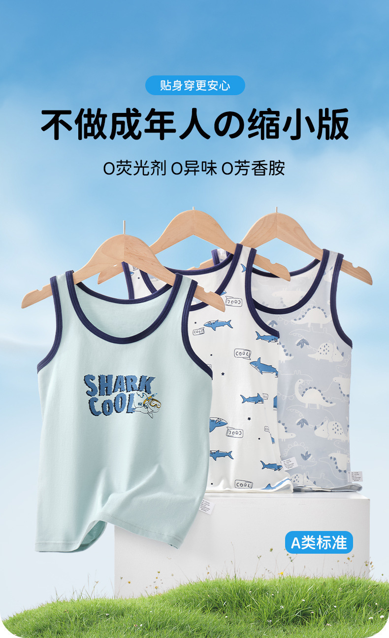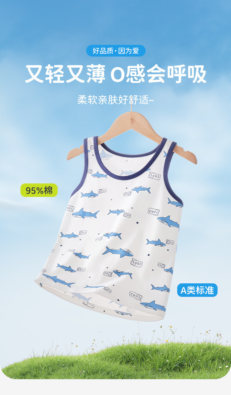 남아용 조끼, 여름용 얇은 아동용 베이스 레이어, 발달기 순면 A형 민소매 상의, 큰 아동용 아우터스토어 가기