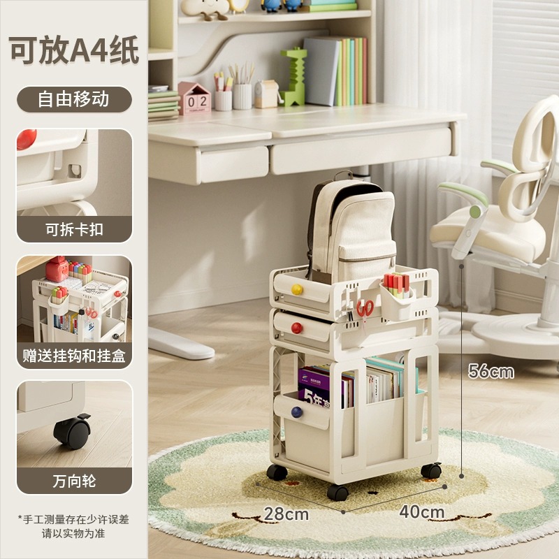 책장, 책상, 카트, 소형 수납선반, 학생교실, 테이블 아래 이동식, 바닥에 책가방, 책수납, 수납정리스토어 가기
