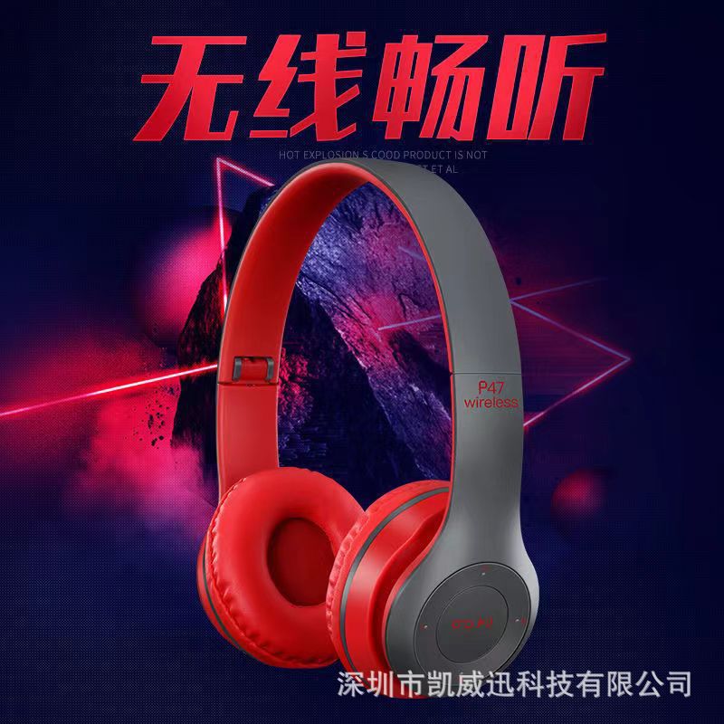 공장 도매 국경 간 인기 P47 무선 블루투스 헤드셋 접이식 중저음 대외 무역 선물 스포츠 헤드셋