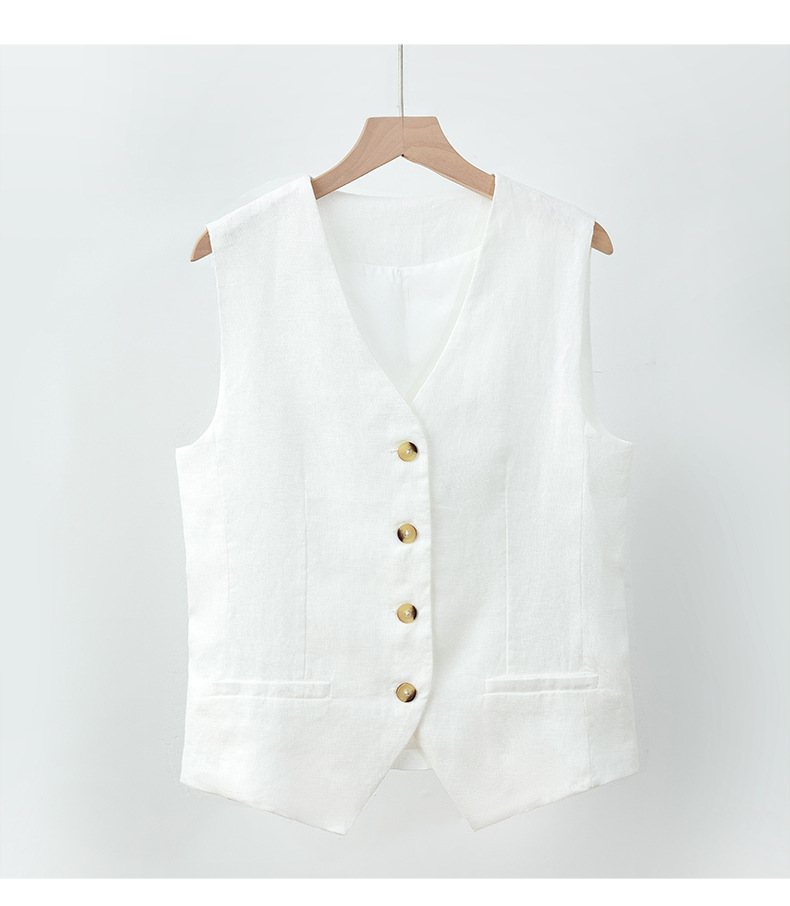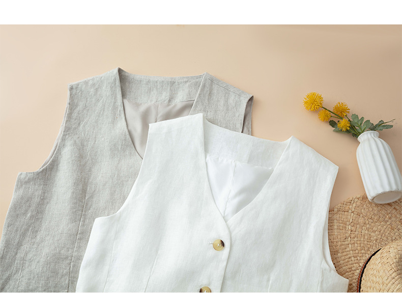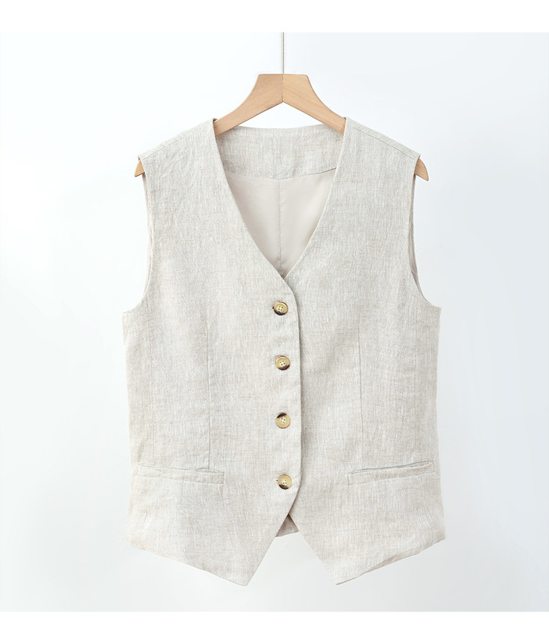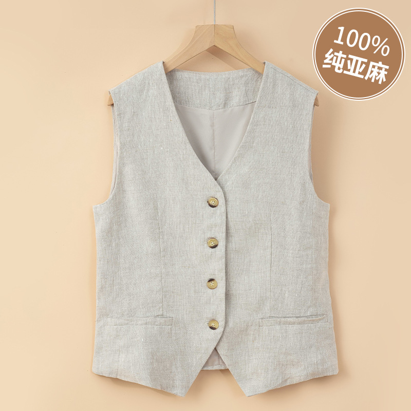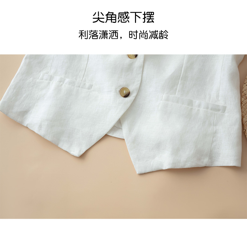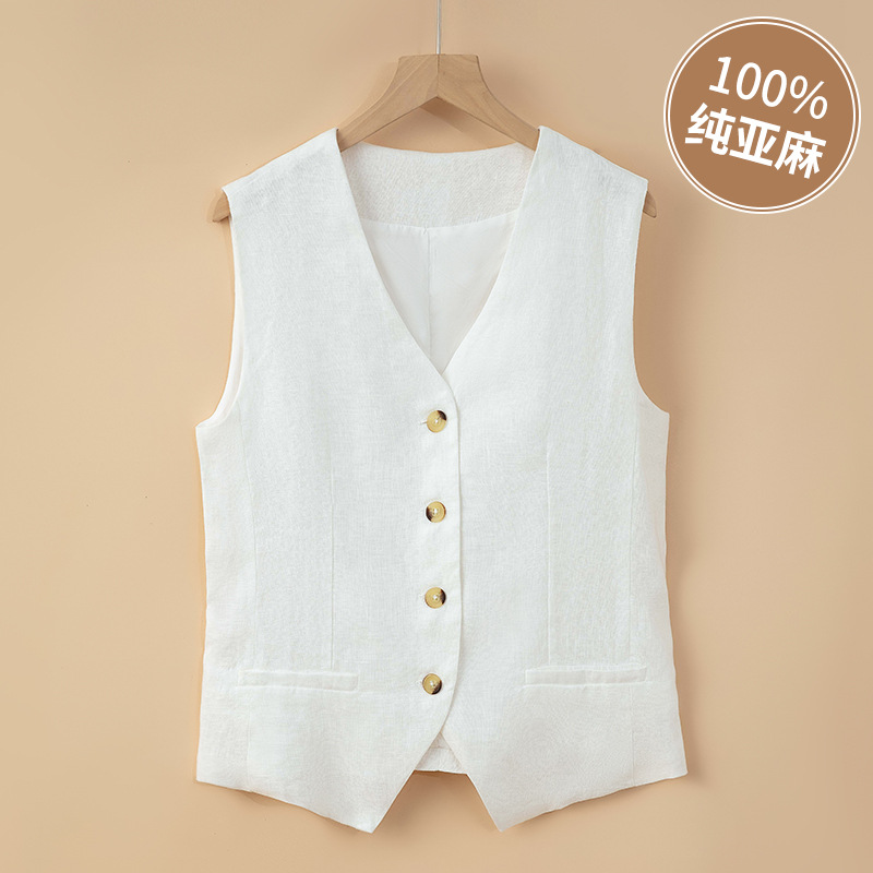순수 린넨 조끼 얇은 여성 조끼 여름 새로운 하이 엔드 슬림 짧은 민소매 양복 v 넥 조끼