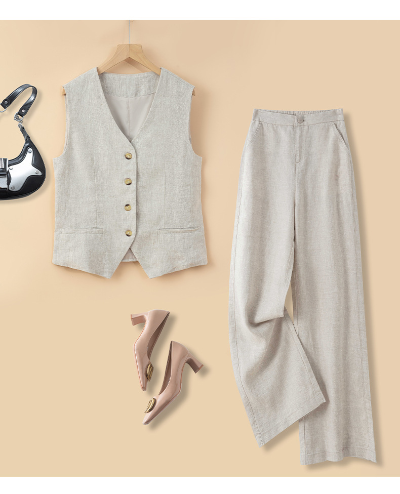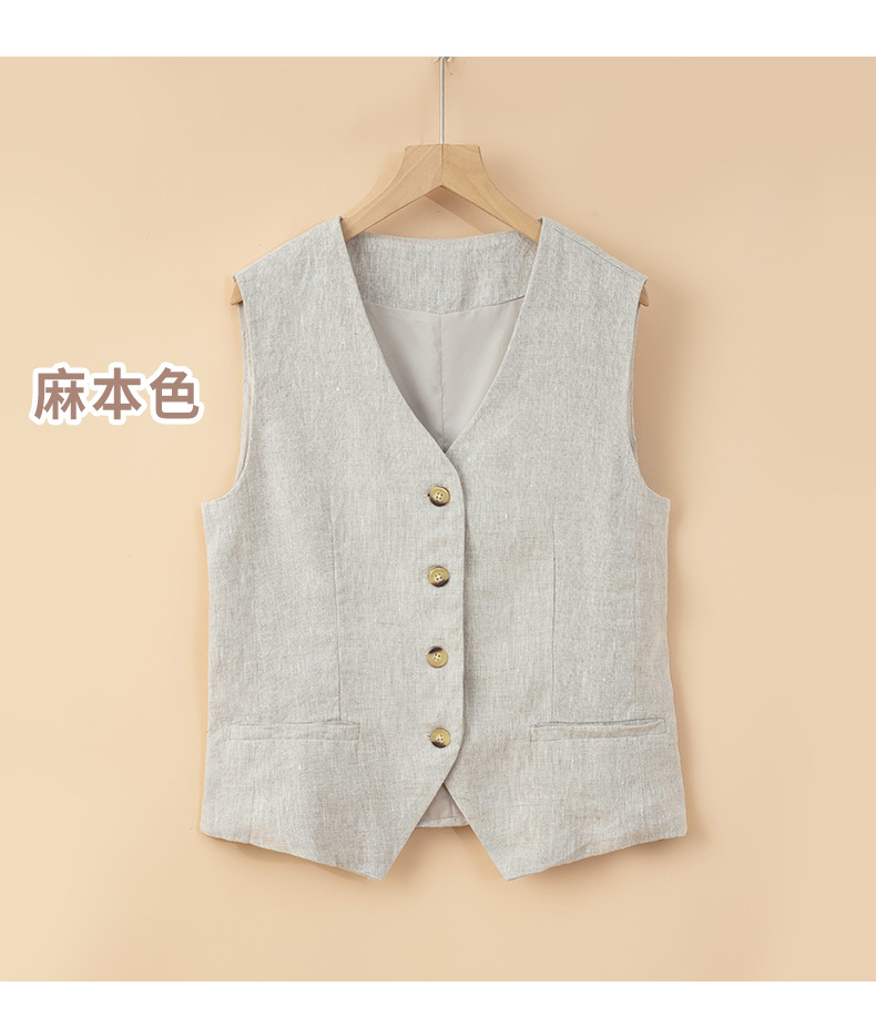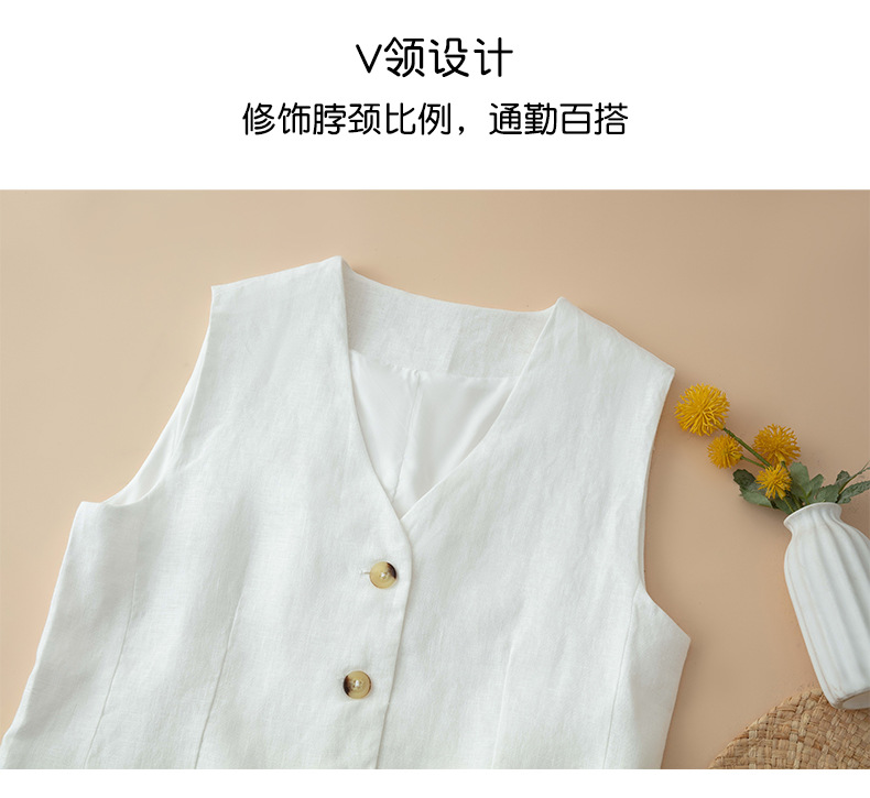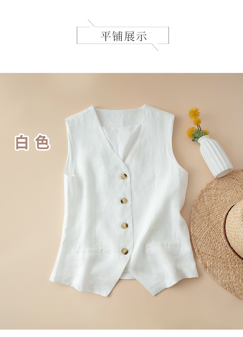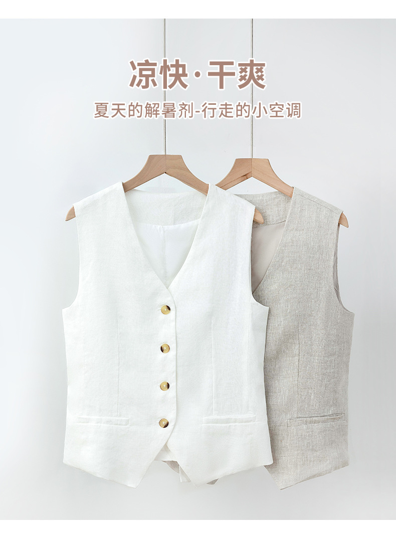 순수 린넨 조끼 얇은 여성 조끼 여름 새로운 하이 엔드 슬림 짧은 민소매 양복 v 넥 조끼스토어 가기