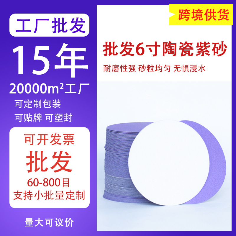 공장 직접 판매 6inch 보라색 사포 보라색 모래 세라믹 연마재 건식 연삭 습식 연삭 플로킹 자체 접착 디스크스토어 가기