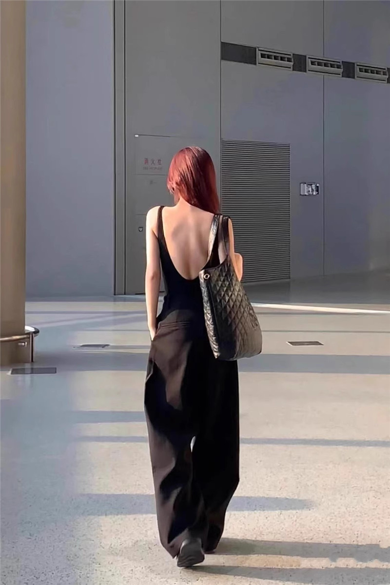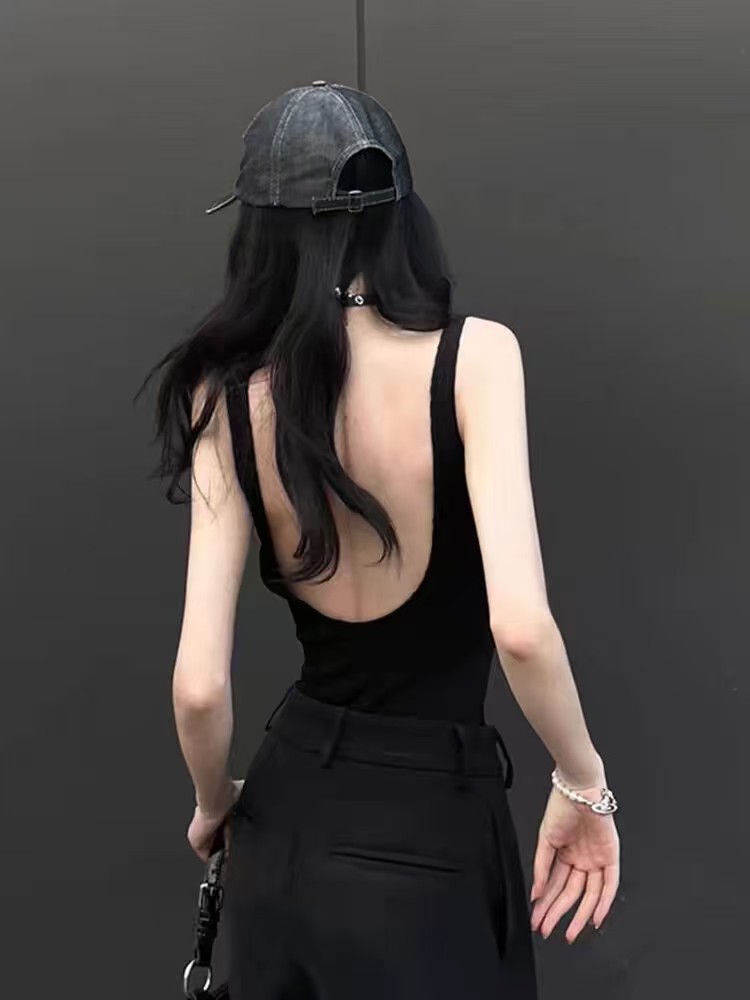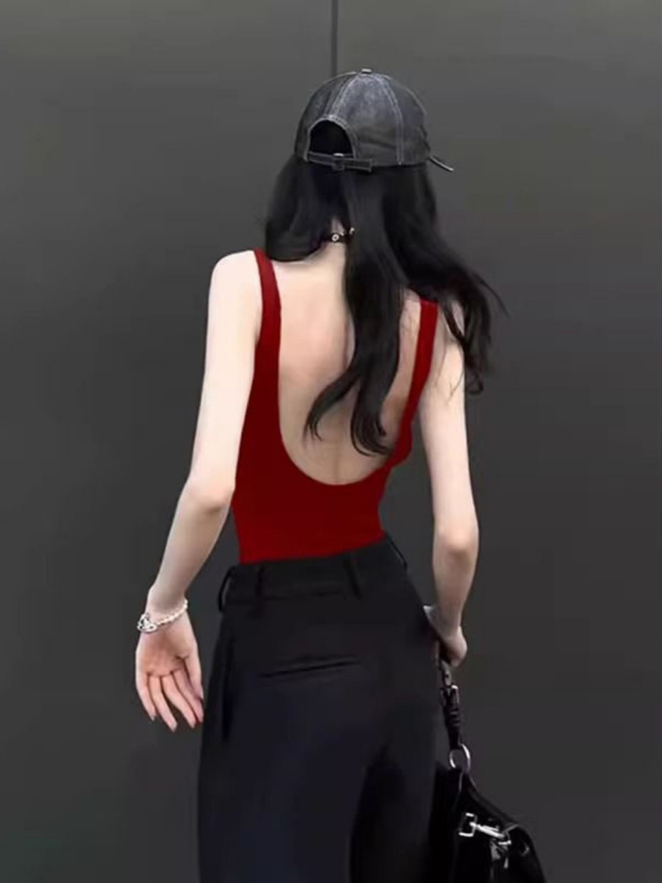 아메리칸 핫걸 아우터 백리스 캐미솔 고정형 가슴 패드 빅 U넥 미끄럼 방지 스트립 다용도 슬리밍 탑