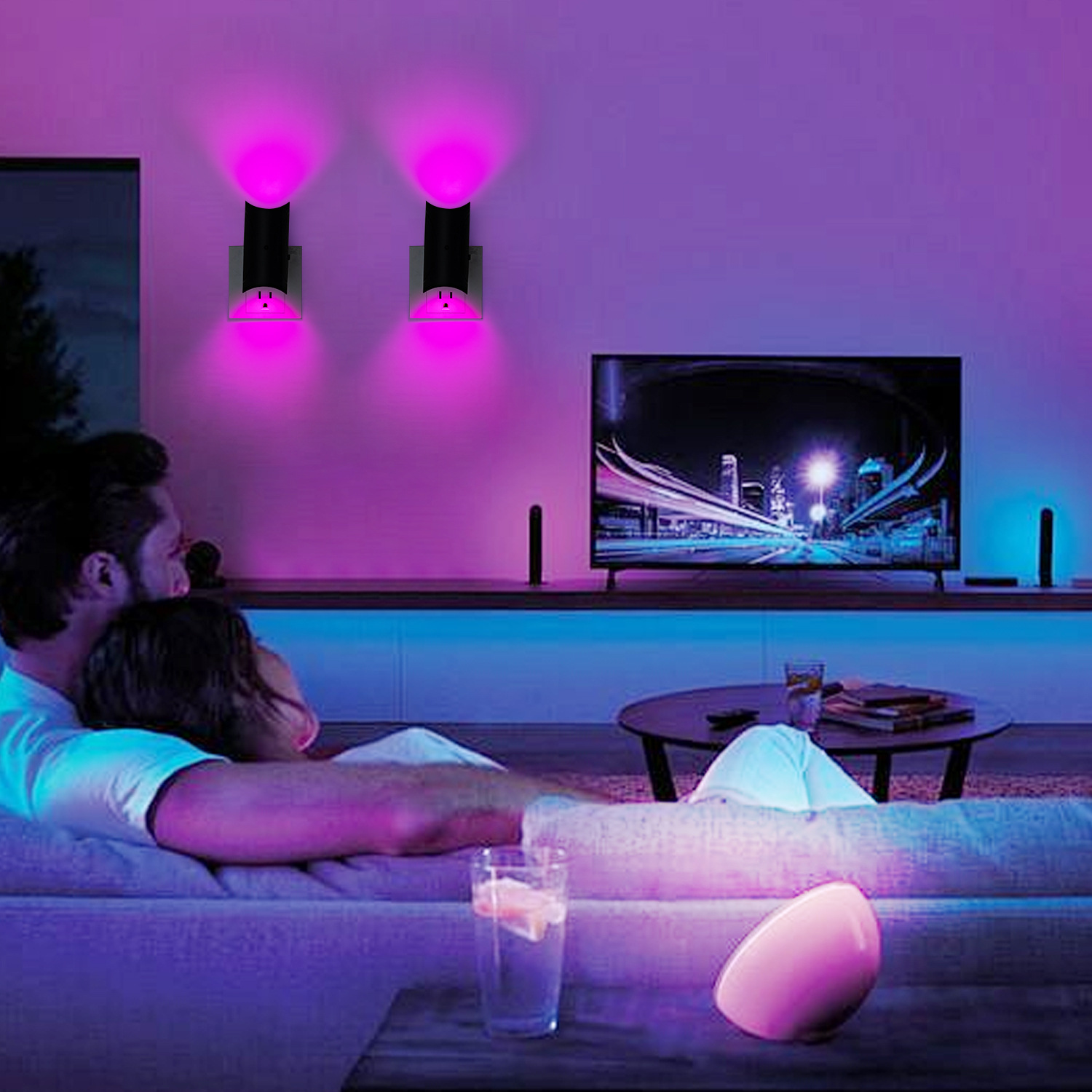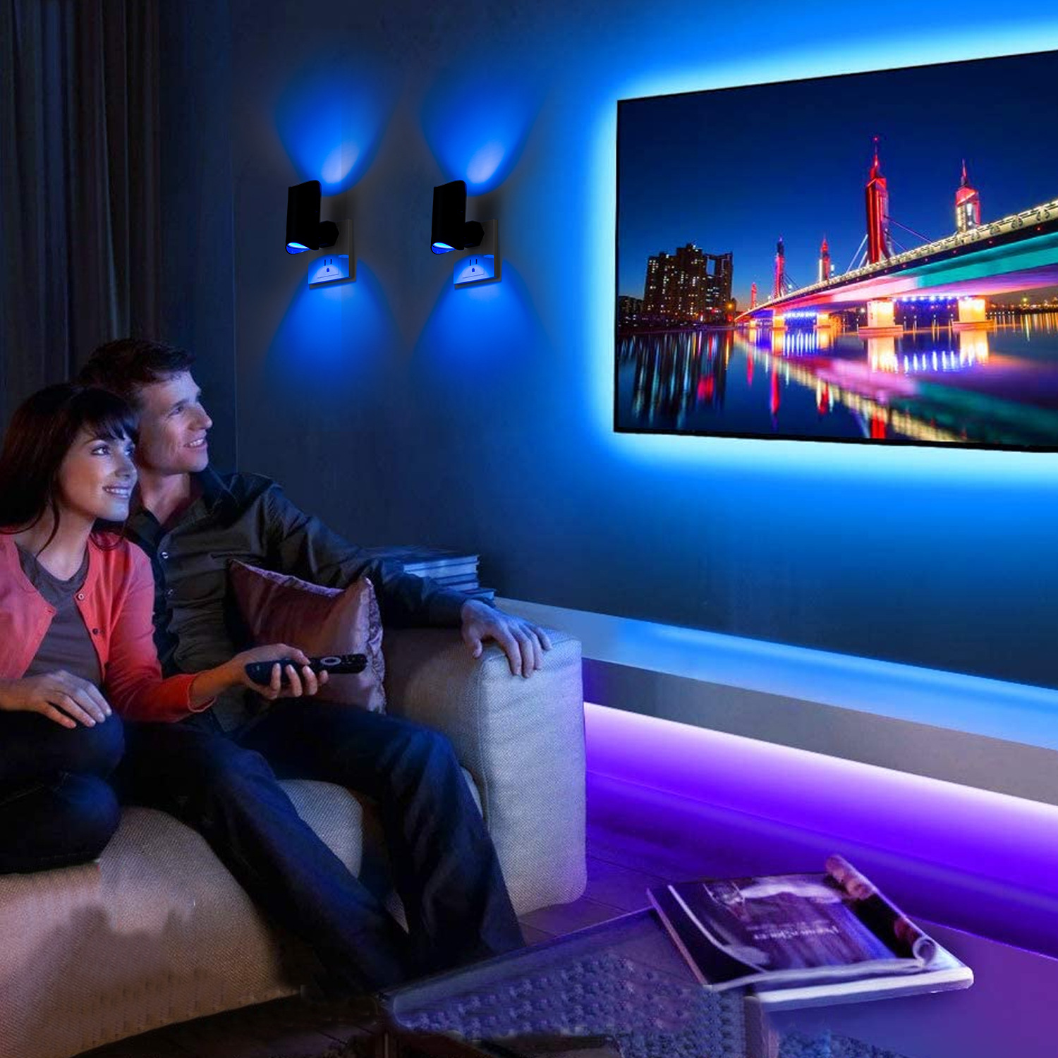 국경을 넘는 다채로운 그라데이션 분위기 야간 조명 지능형 인체 유도 자기 직접 플러그인 다채로운 벽 조명 홈 조명