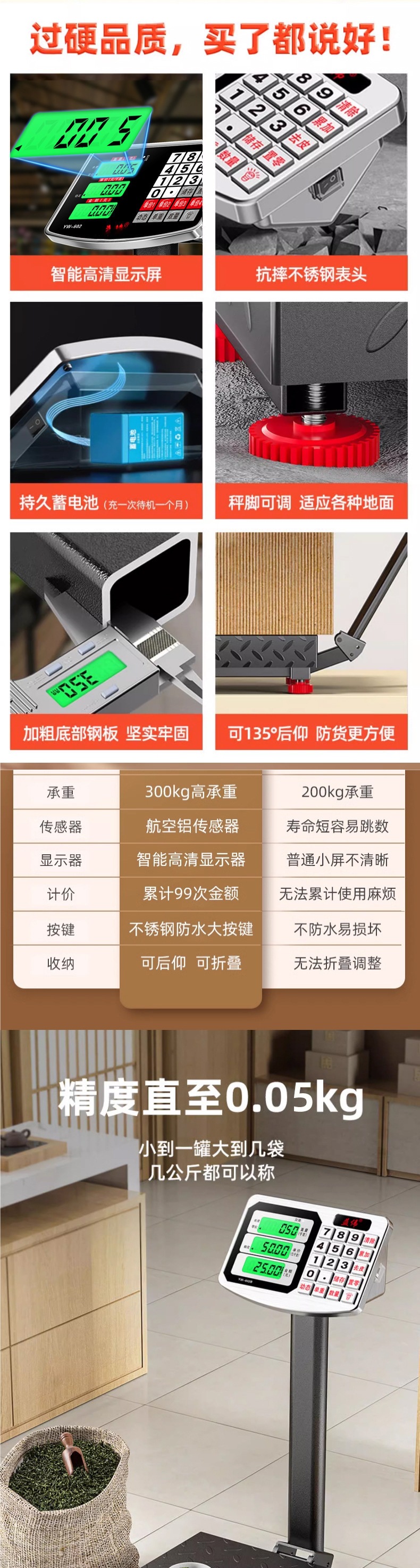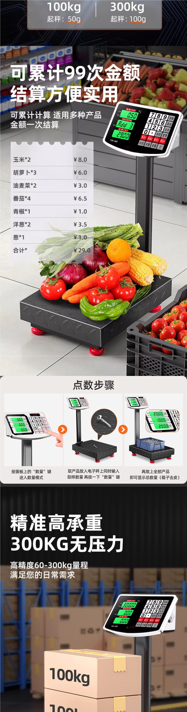 300 전자 저울 상업용 소형 플랫폼 저울 100kg 가정용 식품 고정밀 스톨 저울