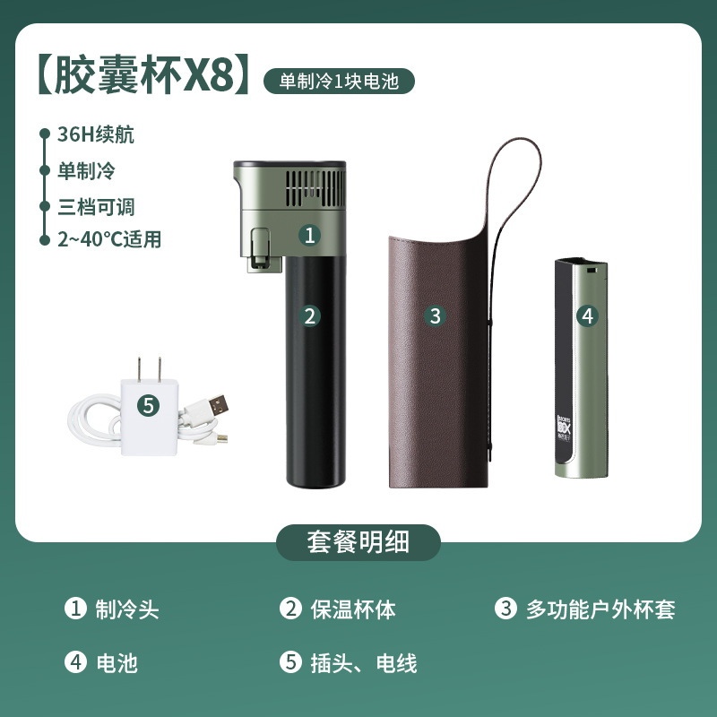 • 단일 냉각 [캡슐 컵 X8+3 배터리] 배터리 수명 108H ☆ 3단 조절 가능 ☆ 2~40도에 적용 가능