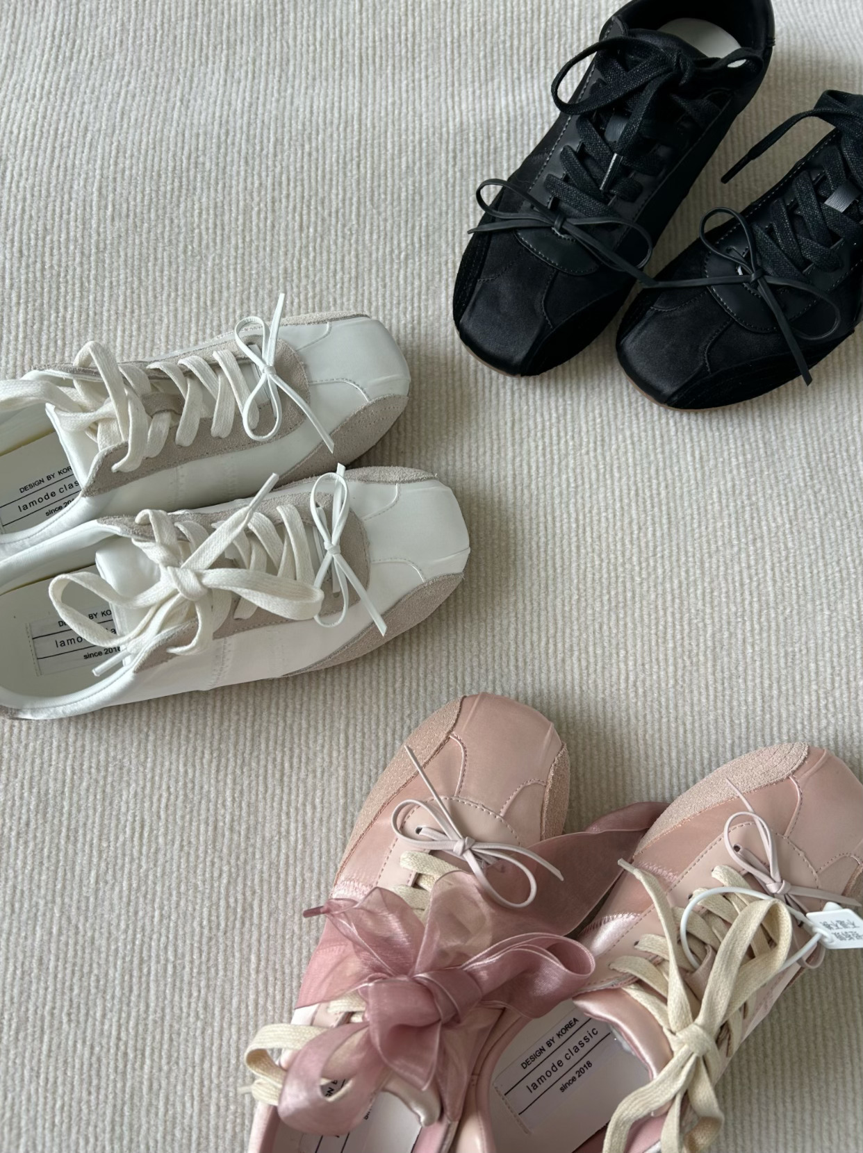 여성을위한 발레 스타일 육체 훈련 신발 2025 봄 새로운 달콤한 소녀 둥근 발가락 새틴 흰색 신발 나비 매듭 스포츠 및 캐주얼 신발