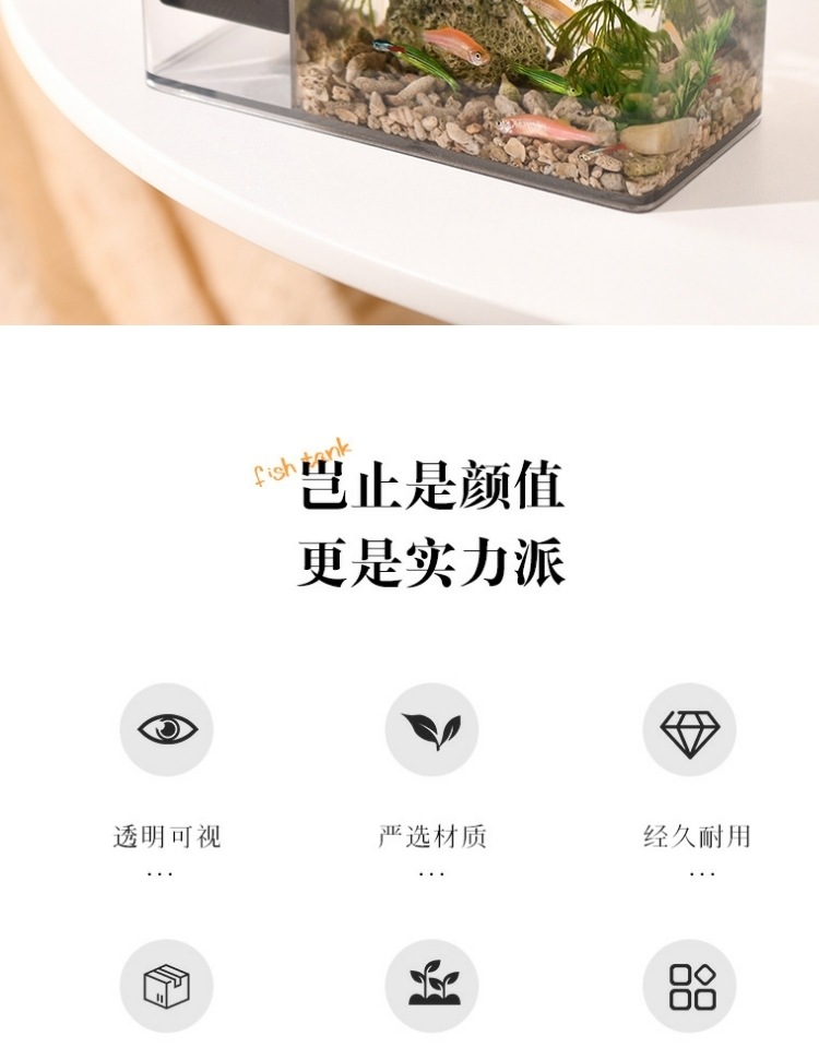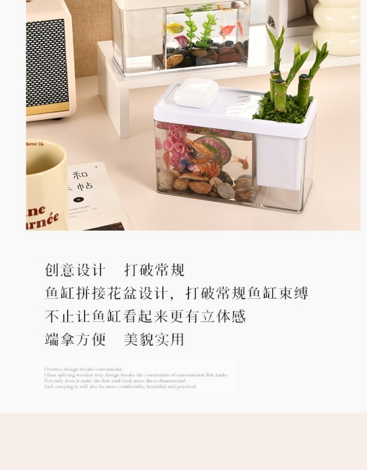 새로운 게 생태 탱크 작은 물고기 탱크 수족관 투명 아크릴 커버 거실 조경 홈 탱크