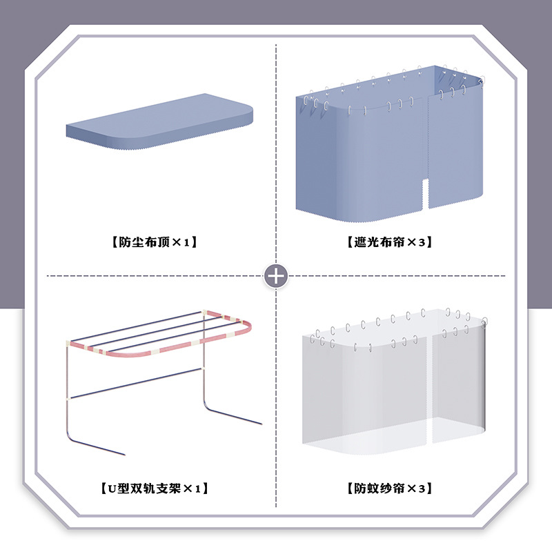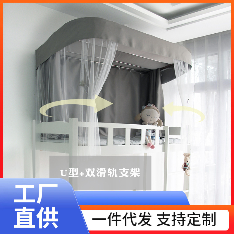 ✅ 도매 대학생 순수 회색 기숙사 강력한 차광 침대 커튼 상단 U 자형 이중 트랙 슬라이드 레일 브래킷 모기장스토어 가기