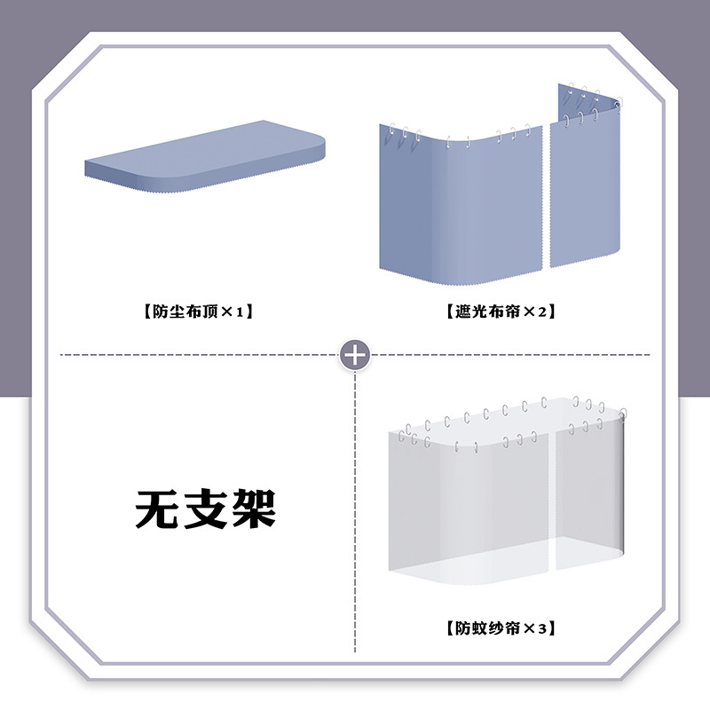 • ✷아아아아✷ 【코코아 그레이】 침대 커튼 3장 + 쉬폰 커튼 3장 + U자형 상단✦★