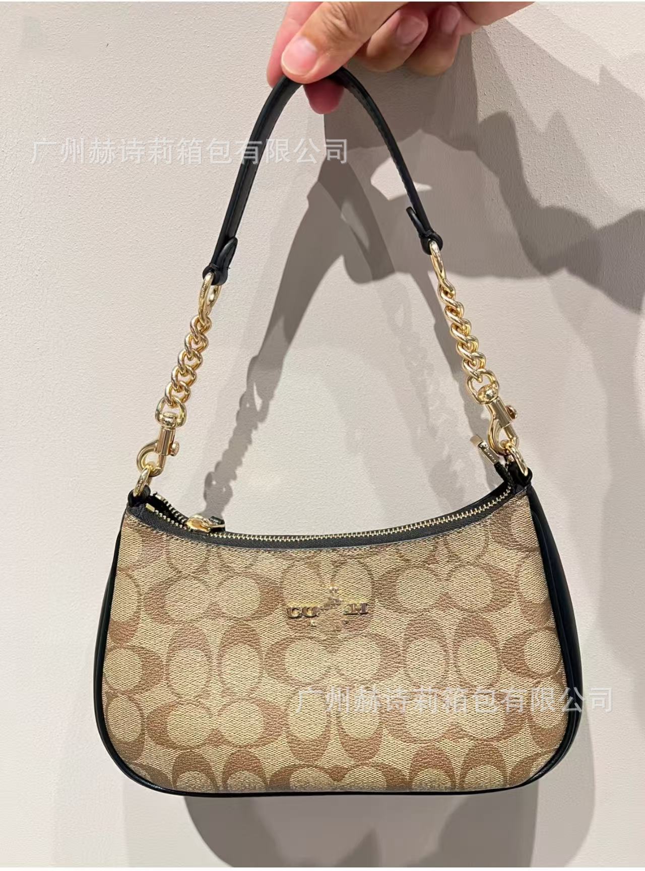 Koujia의 새로운 Teri25 정품 가죽 겨드랑이 가방 유럽과 미국의 복고풍 인쇄 체인 마작 가방 휴대용 크로스 바디 숄더백