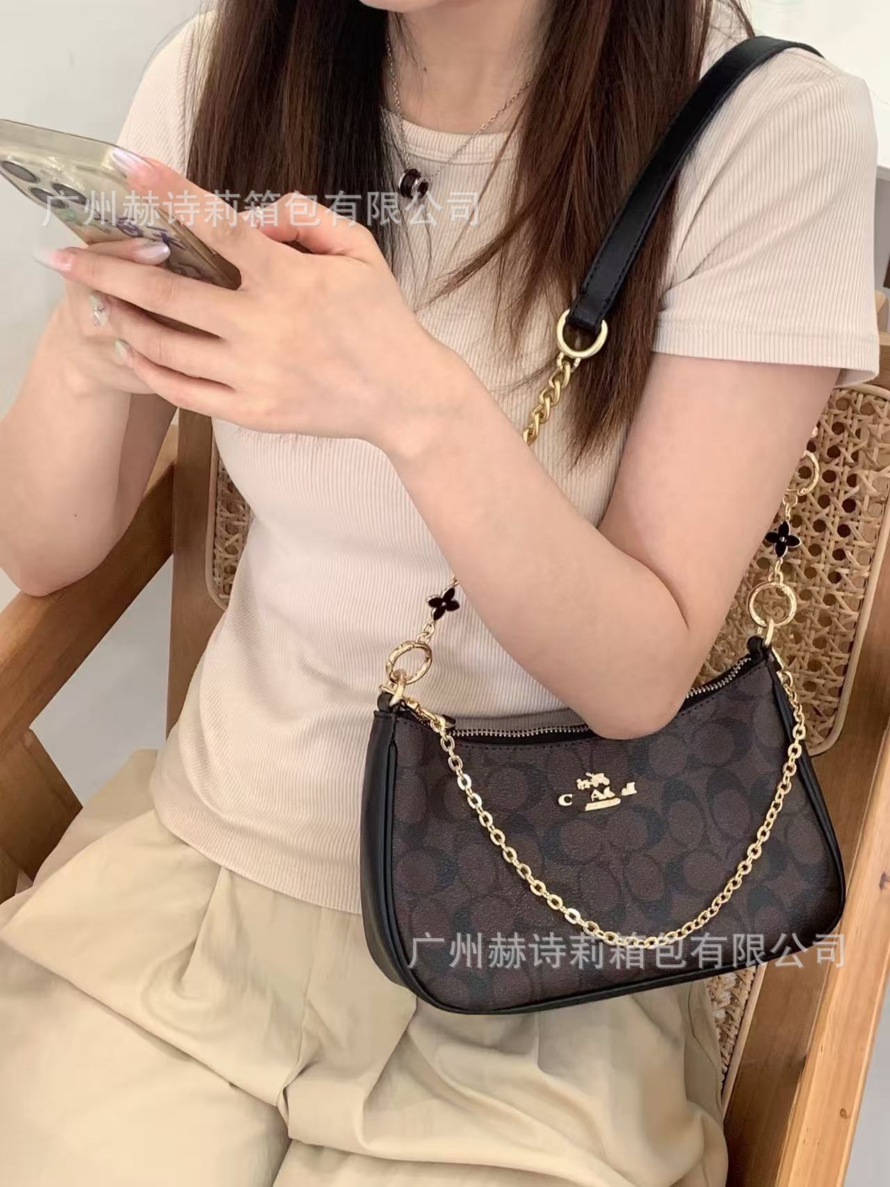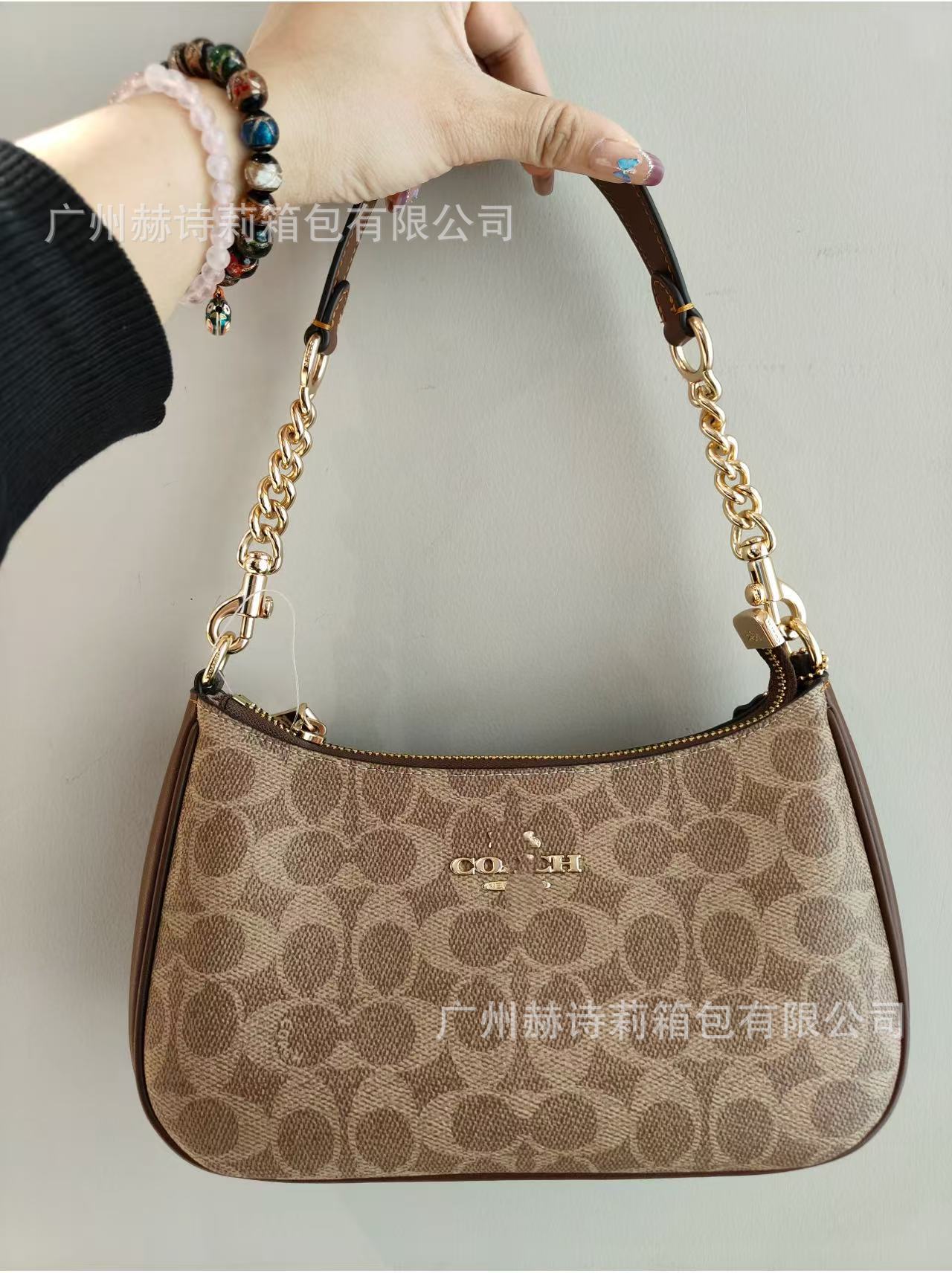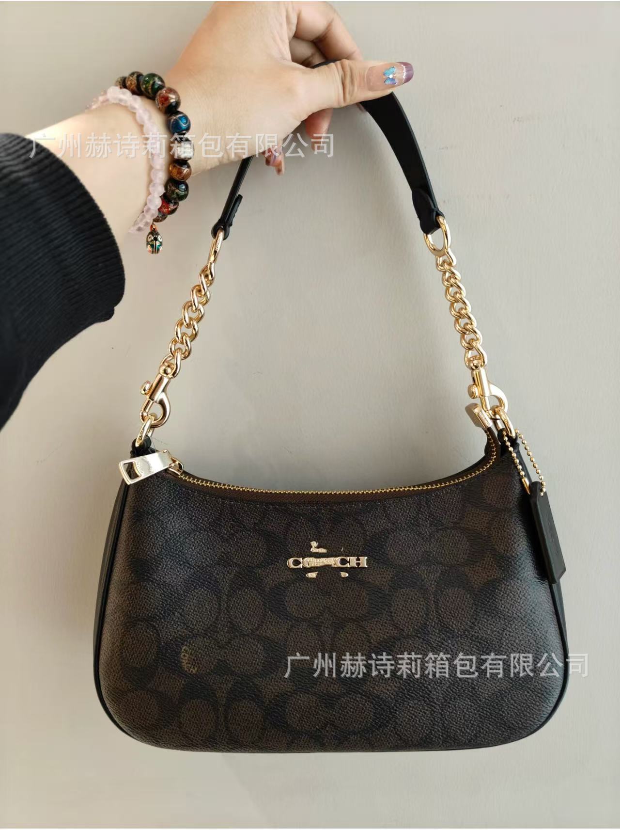 Koujia의 새로운 Teri25 정품 가죽 겨드랑이 가방 유럽과 미국의 복고풍 인쇄 체인 마작 가방 휴대용 크로스 바디 숄더백스토어 가기