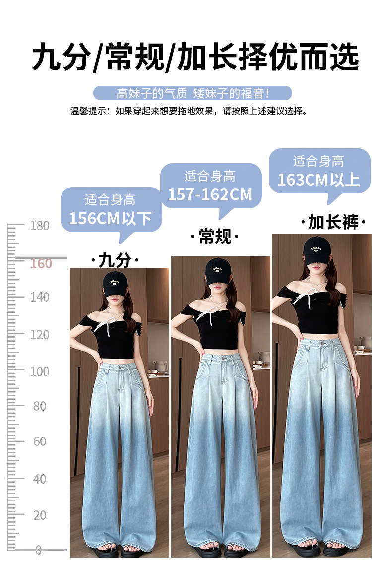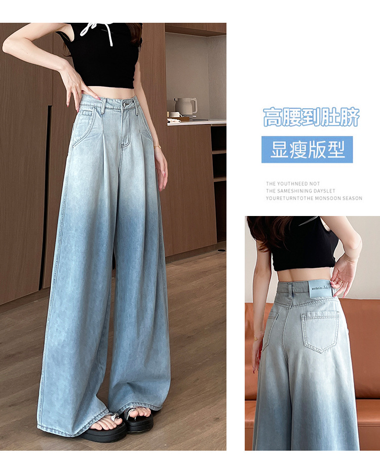 여성용 와이드 레그 청바지 2025 봄, 가을 새로운 슬림 패션 그라데이션 핫 소녀 루즈한 복고풍 스트레이트 팬츠 여성용스토어 가기