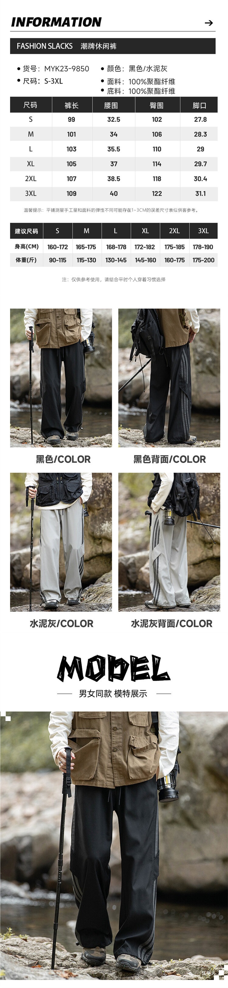 홍콩 스타일 루즈 오버사이즈 와이드 레그 팬츠 등산 스포츠 속건 캐주얼 팬츠 아메리칸 레트로 트렌디 스트레이트 팬츠
