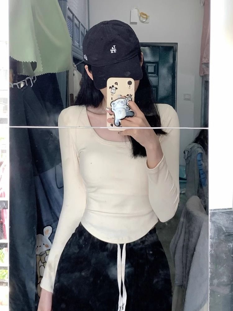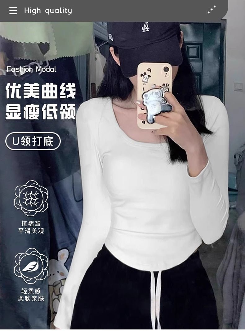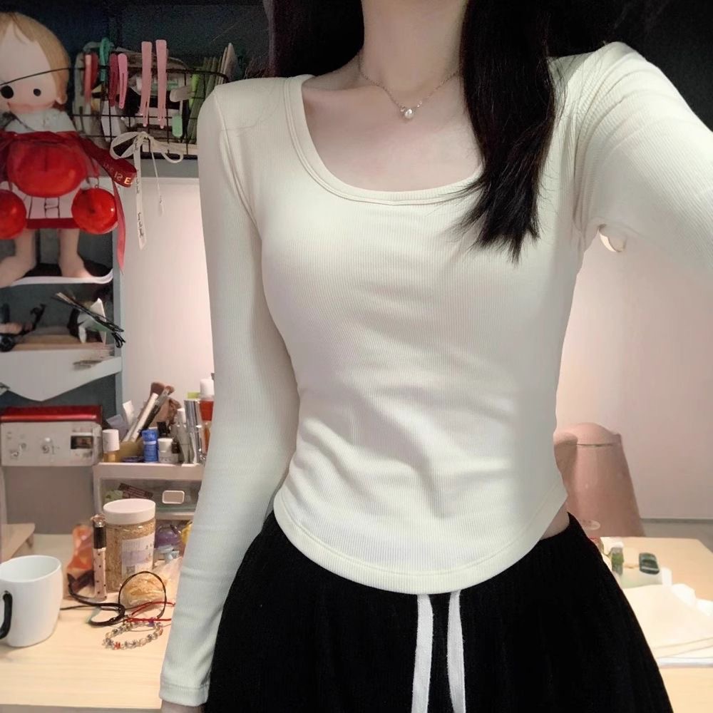 2025년 신형 여성용 오른쪽 어깨 양면 독일 벨벳 바닥 셔츠, 가을 겨울 얇은 벨벳 이너 스퀘어 넥 독일 벨벳 긴팔 티셔츠스토어 가기