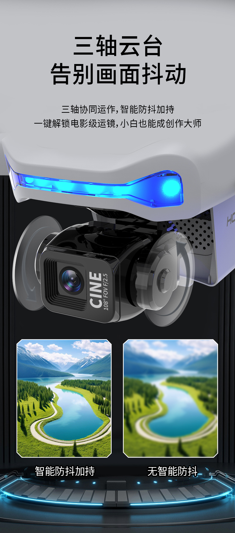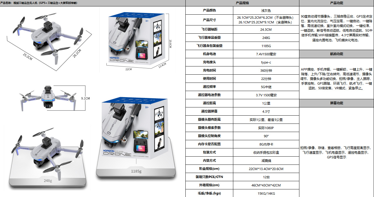 YDJ 3축 짐벌 HD 항공 사진 GPS 드론(화면 실시간 전송 포함) ESC 듀얼 카메라 장애물 회피 원격 제어 항공기