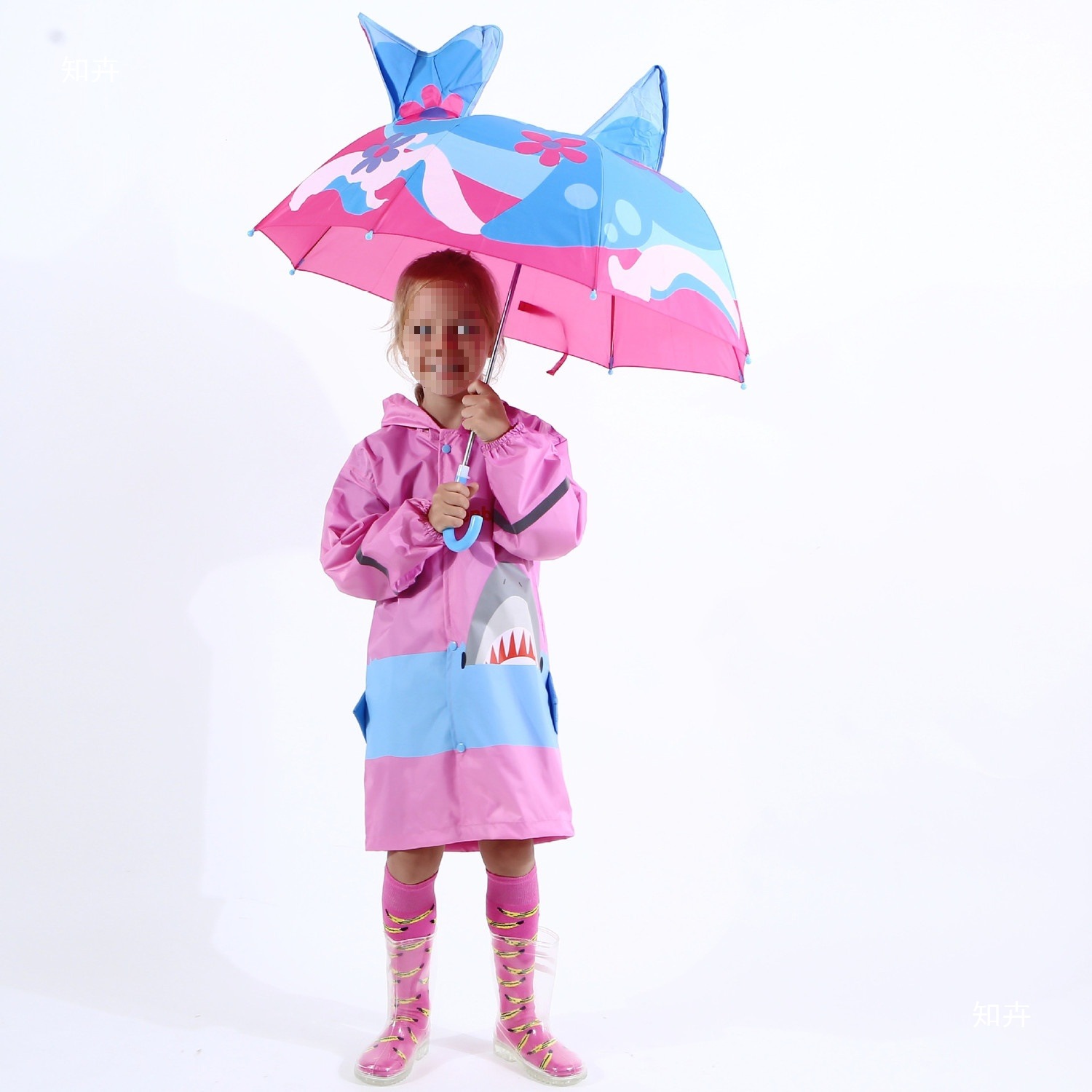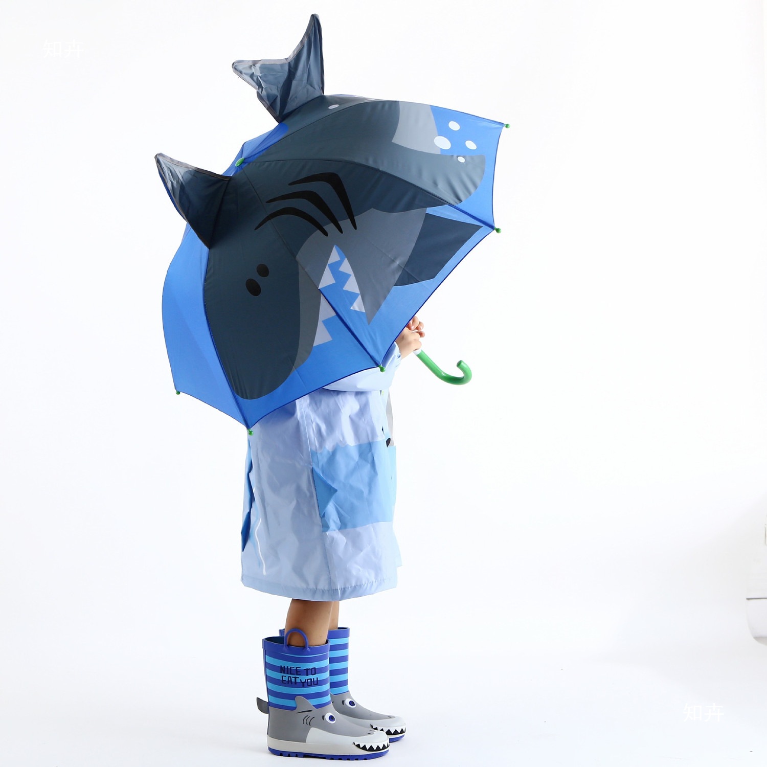소녀들의 멋지고 귀여운 우산, 창의적이고 귀여운 모양, 3D 입체 9색 차양, 비가 오나 눈이 오나 상어 어린이 우산