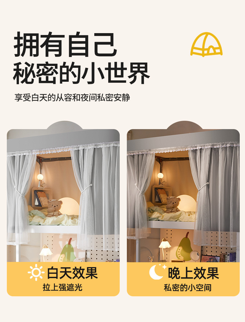 • (0.8베드, 0.9베드 범용 업그레이드 모델에는 벽커튼이 포함되어 있지 않습니다.) 1.2m 높이(벽커튼 제외)