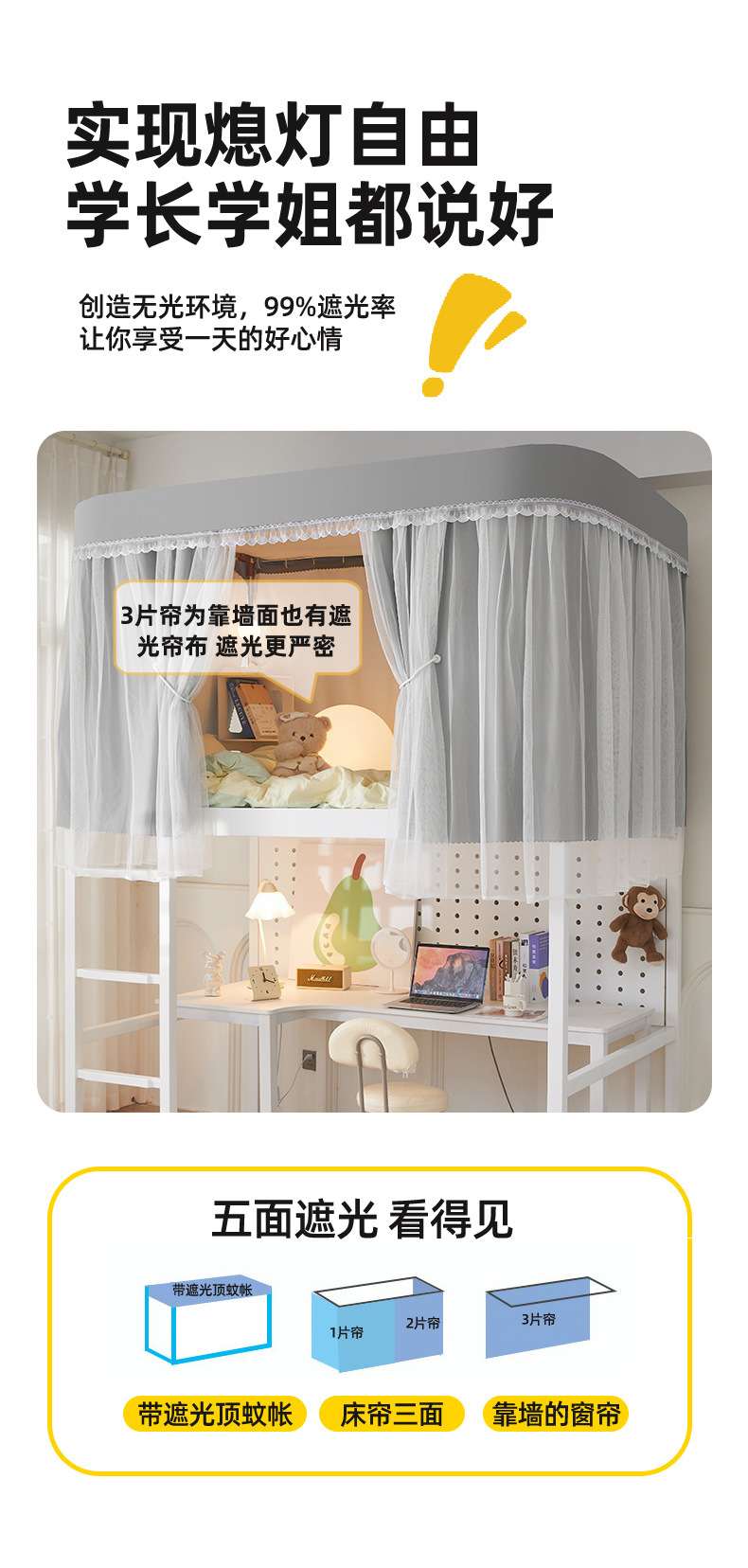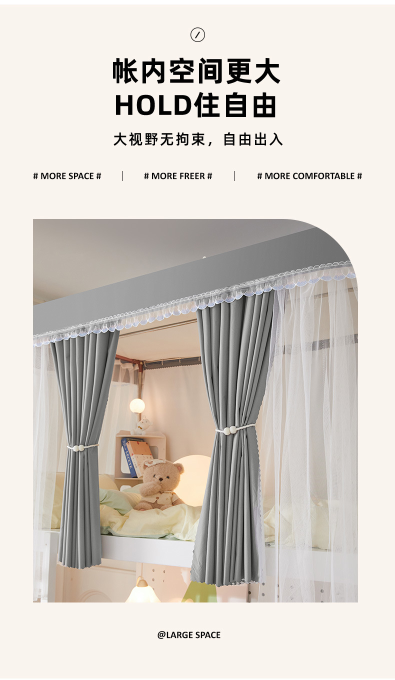 • (0.8베드, 0.9베드 범용 업그레이드 모델에는 벽커튼이 포함되어 있지 않습니다.) 1.5m 높이(벽커튼 제외)