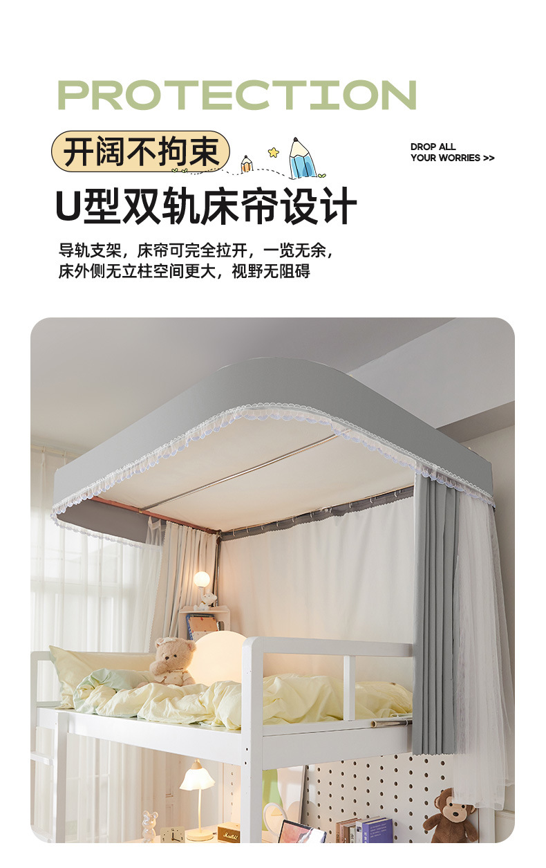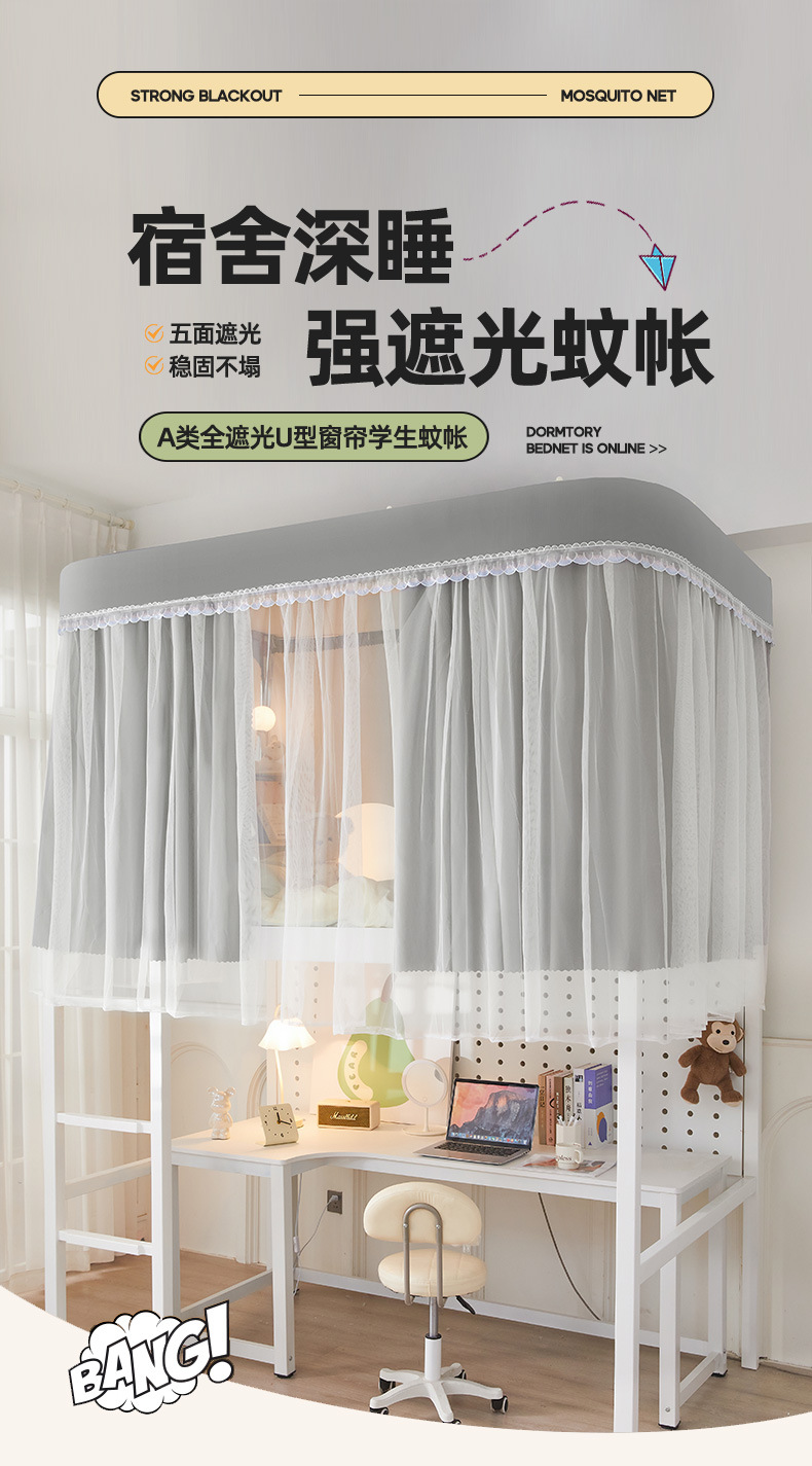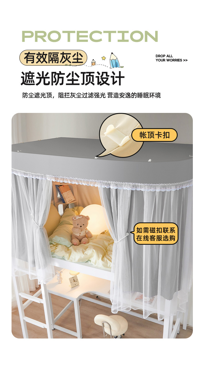 심플한 단색 대학생 기숙사 모기장 차광 침대 커튼 싱글 이층침대 슬라이드 모기장 침구 난퉁스토어 가기