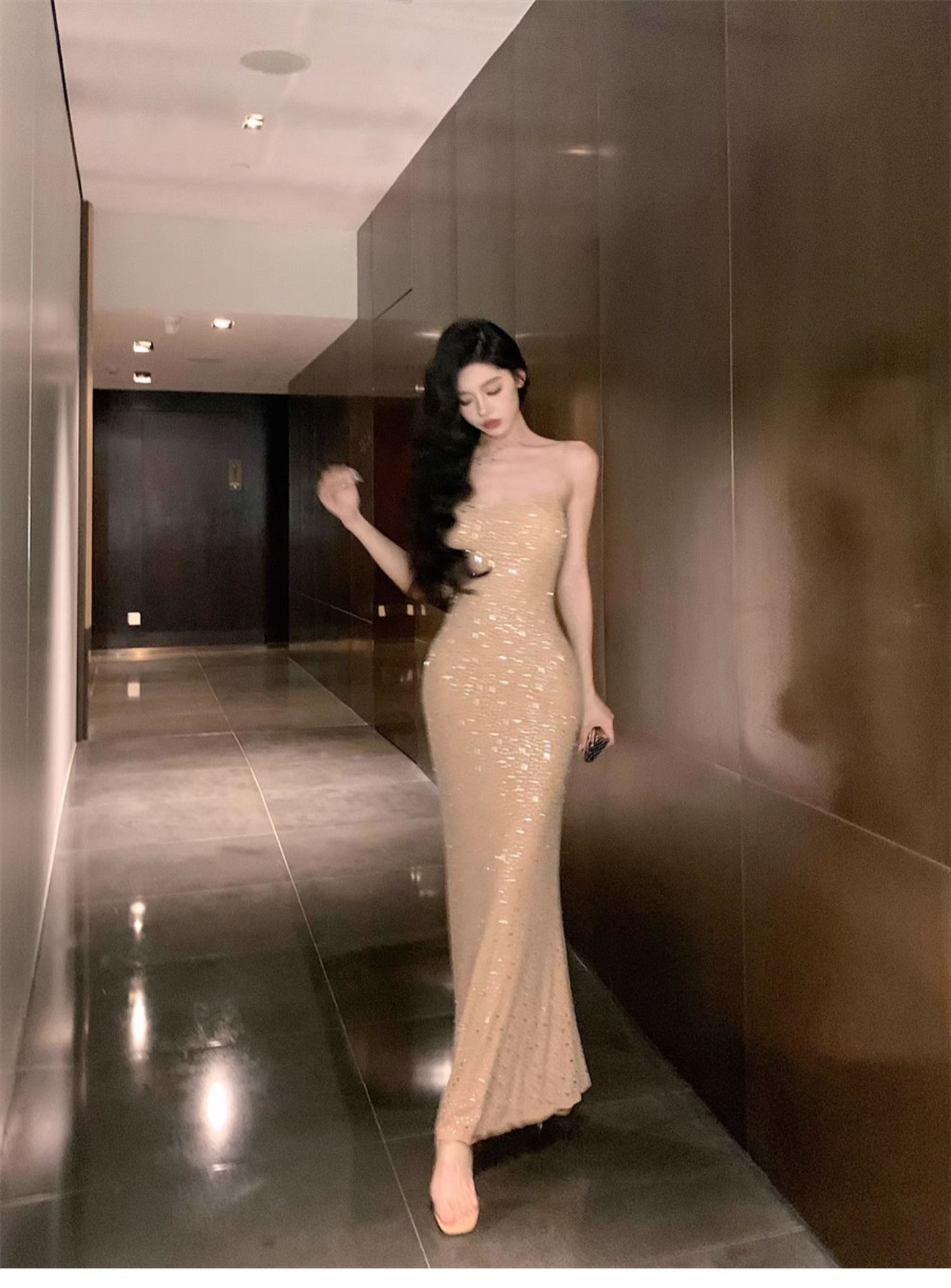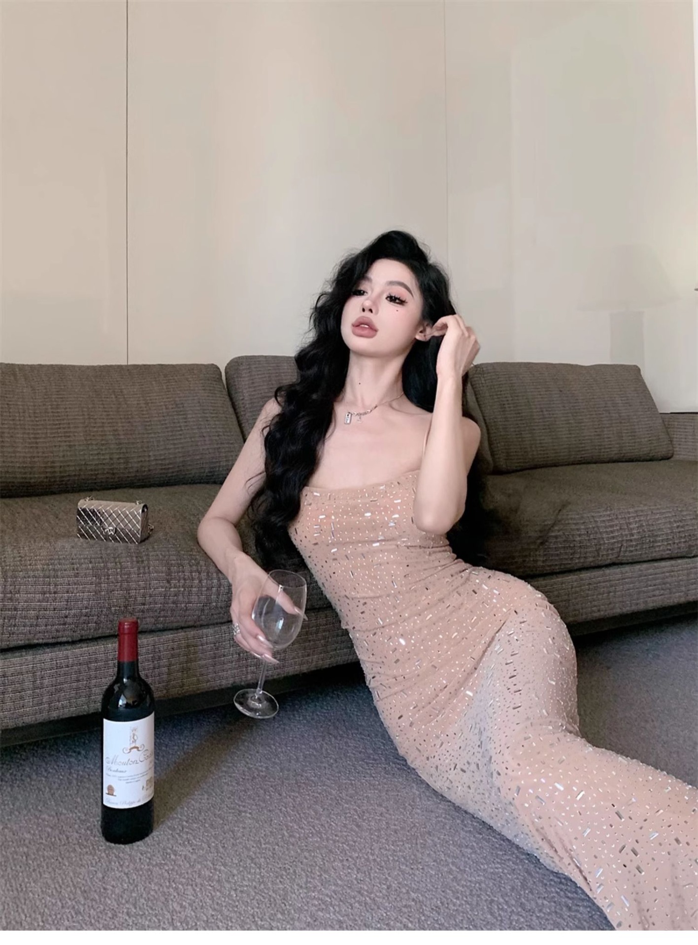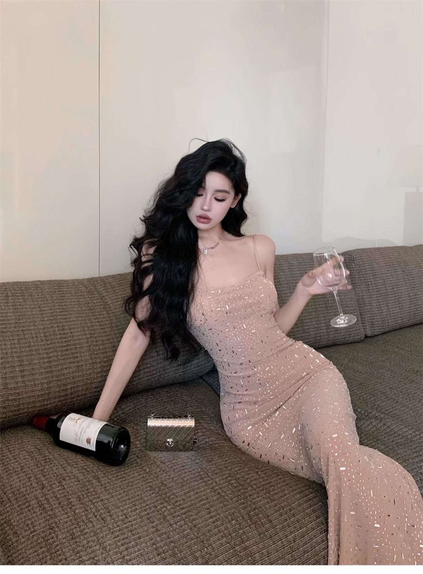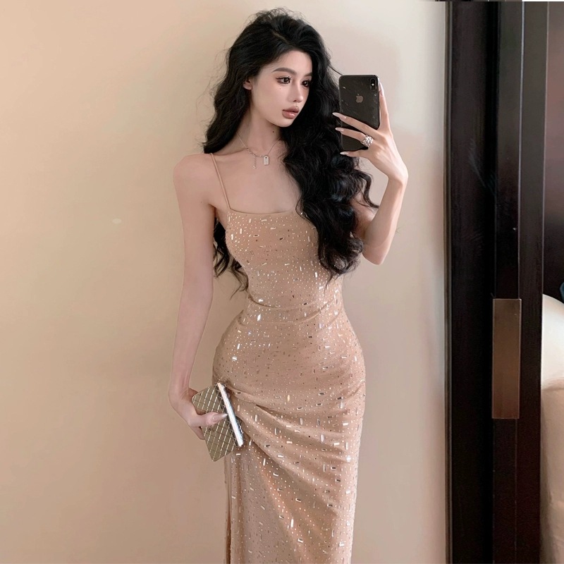 여성을위한 프랑스 스타일 서스펜더 드레스 여름 2025 새로운 순수한 욕망 섹시한 뜨거운 소녀 슬림 피트 힙 롱 스커트스토어 가기