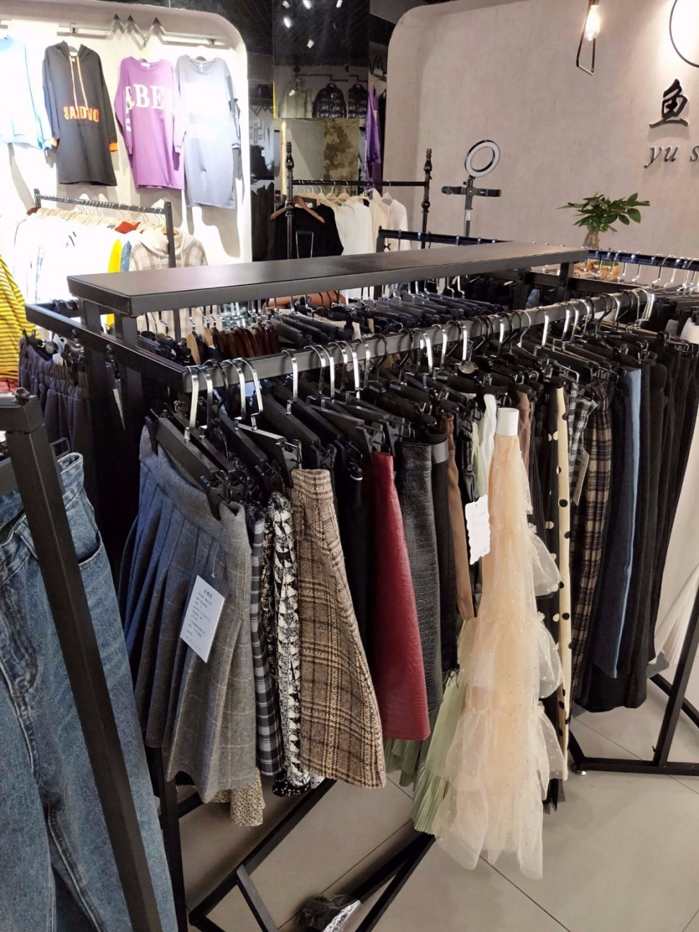 옷걸이, 바닥걸이형 아일랜드형, 여성복 및 아동복걸이, 이중봉옷걸이, 옷가게 바닥걸이형 옷걸이, 이중열 공장스토어 가기