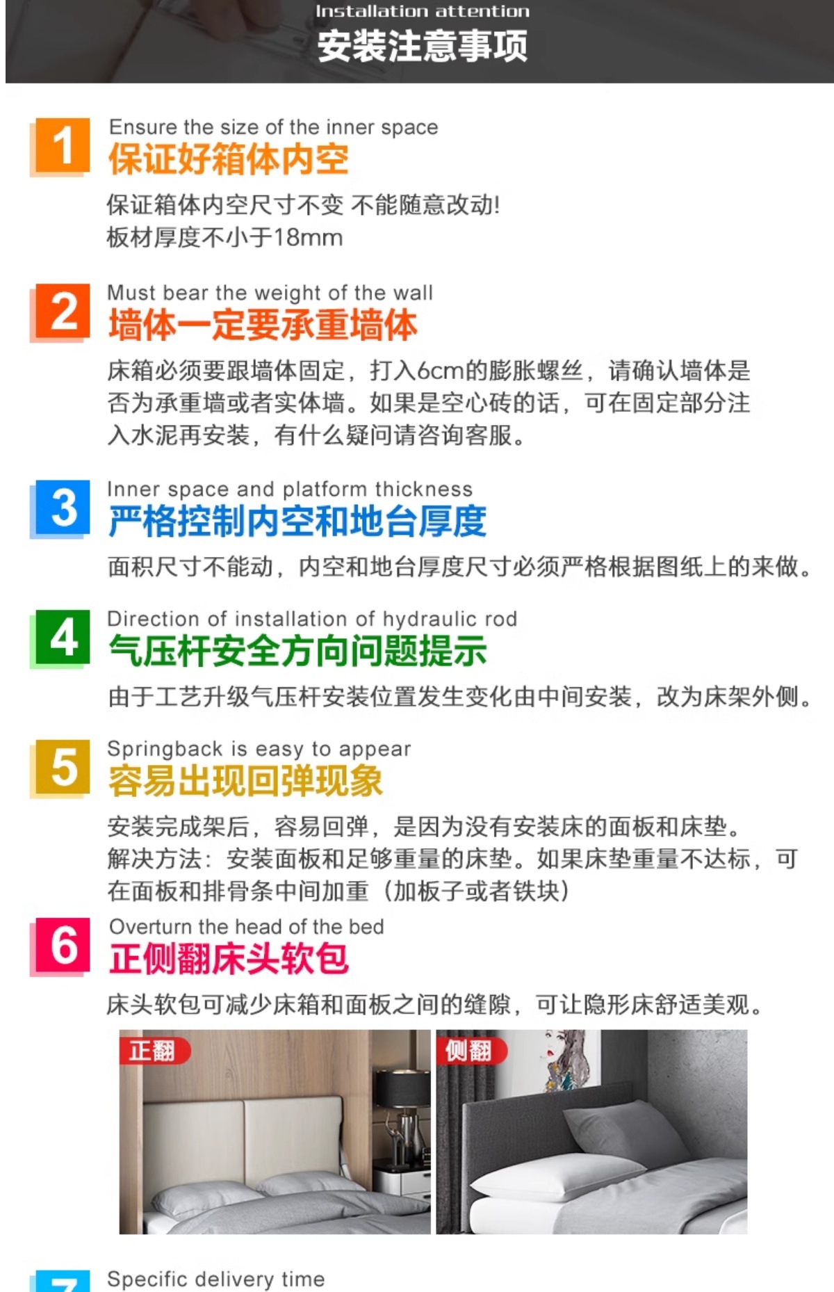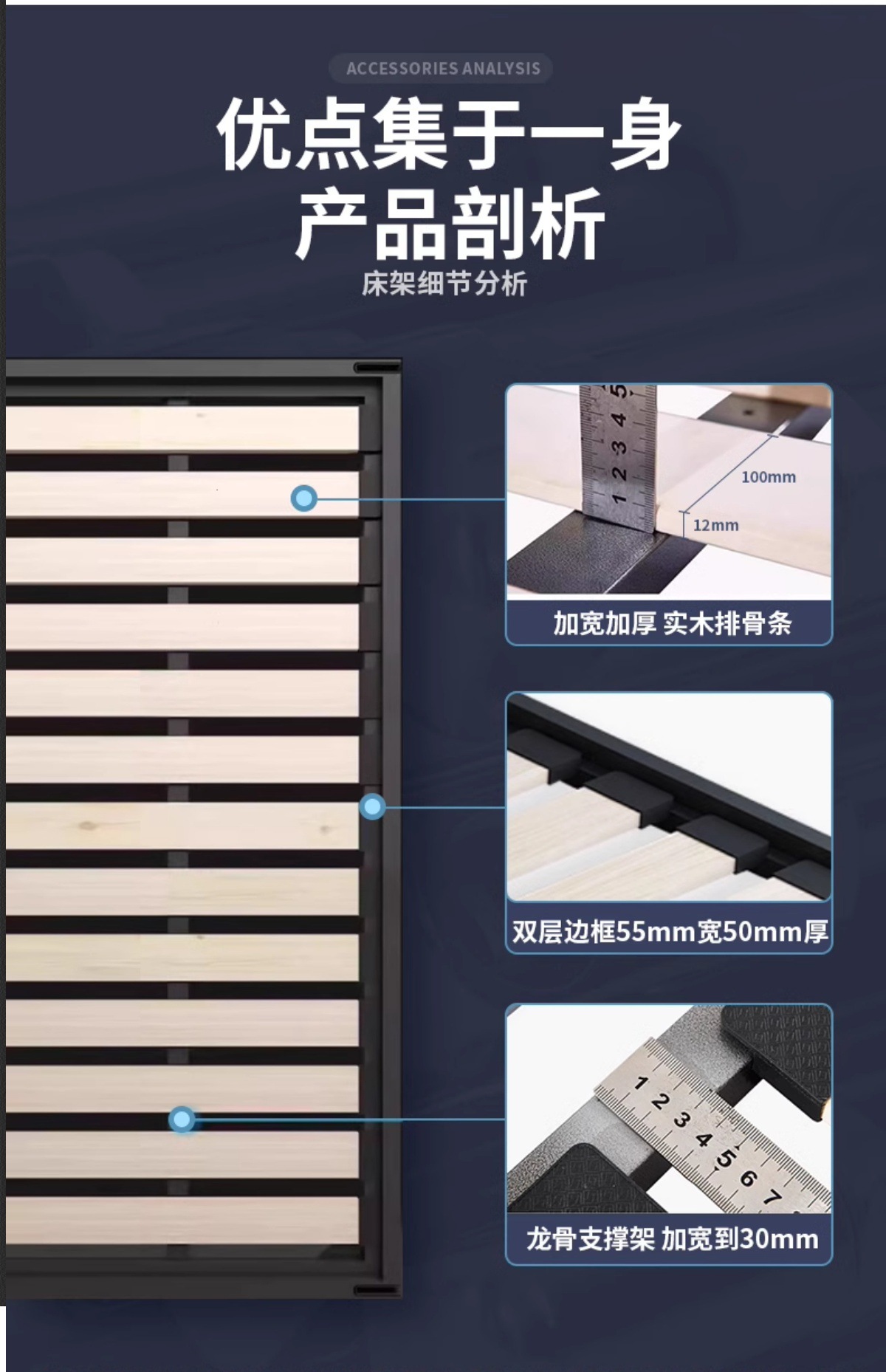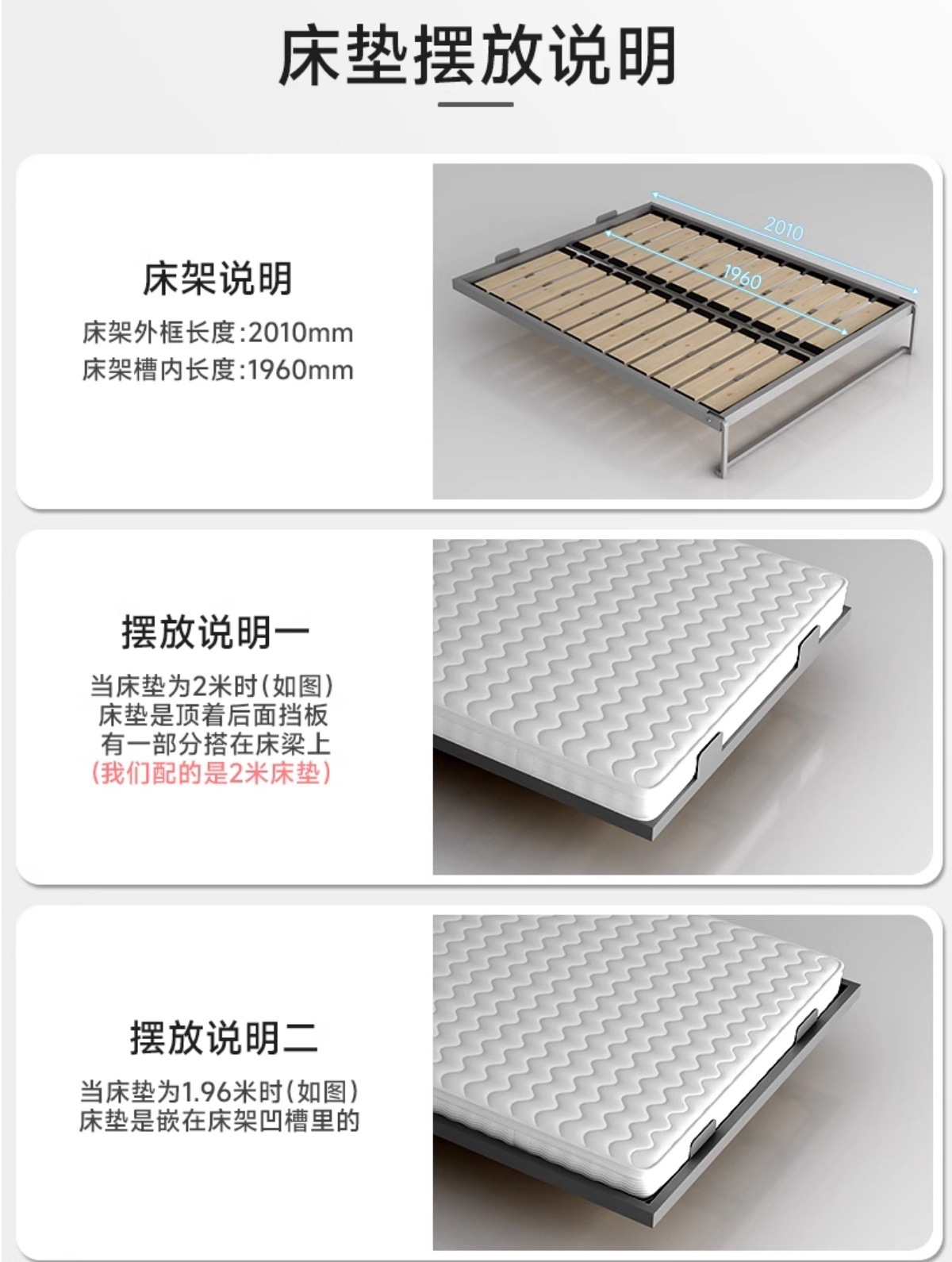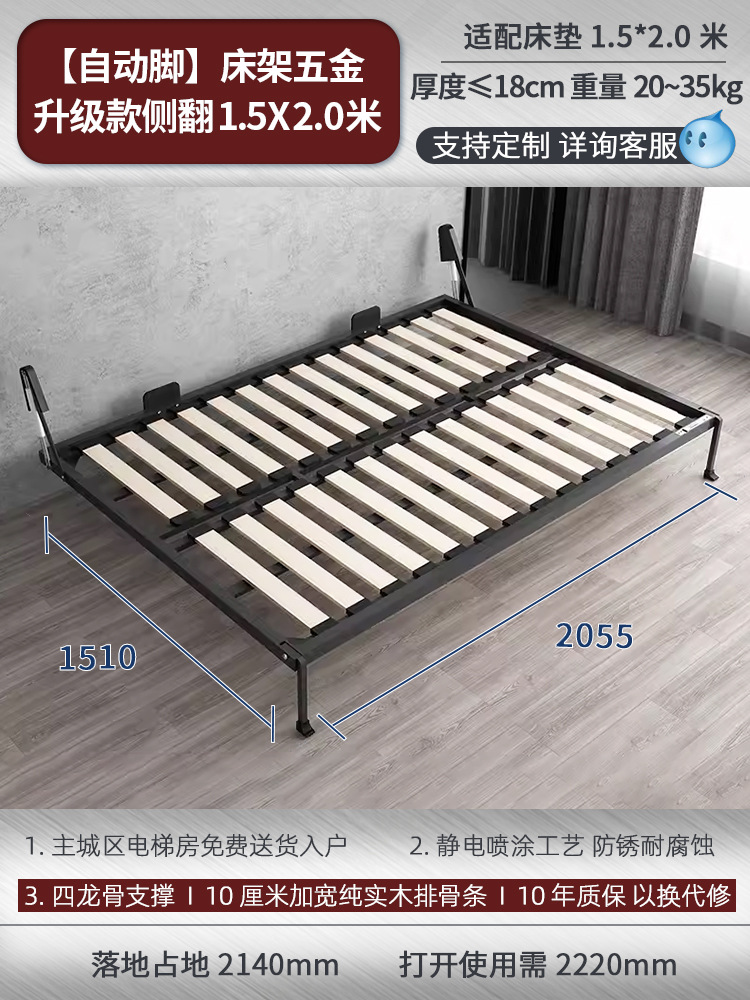 • 강화 및 업그레이드 모델-1.8* 2.0m [전면 플립] [4개의 용골 + 10cm 단단한 나무 갈비 스트립] 하드웨어 액세서리