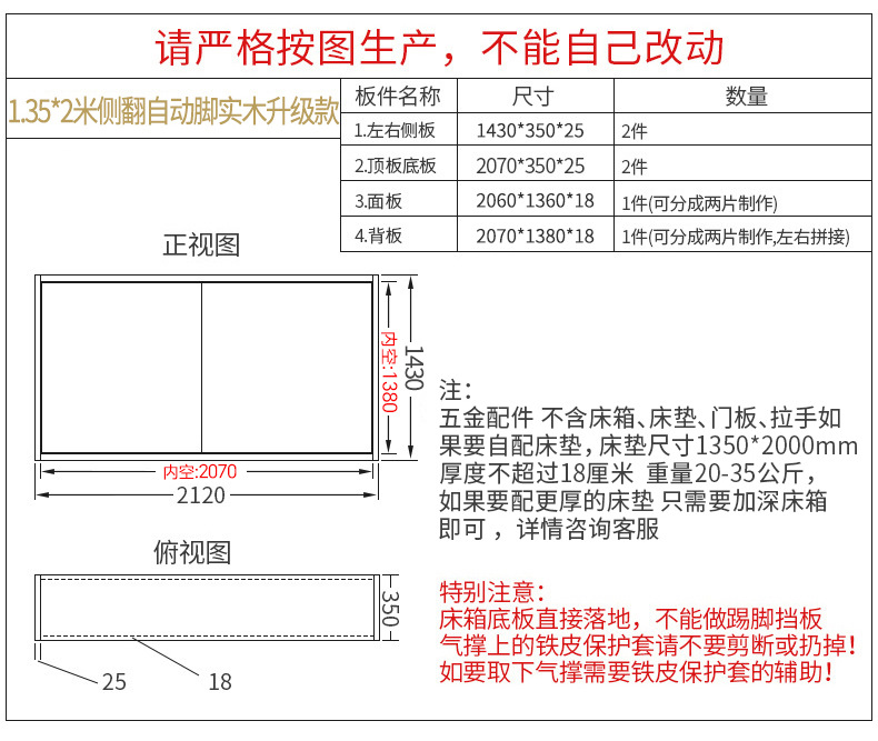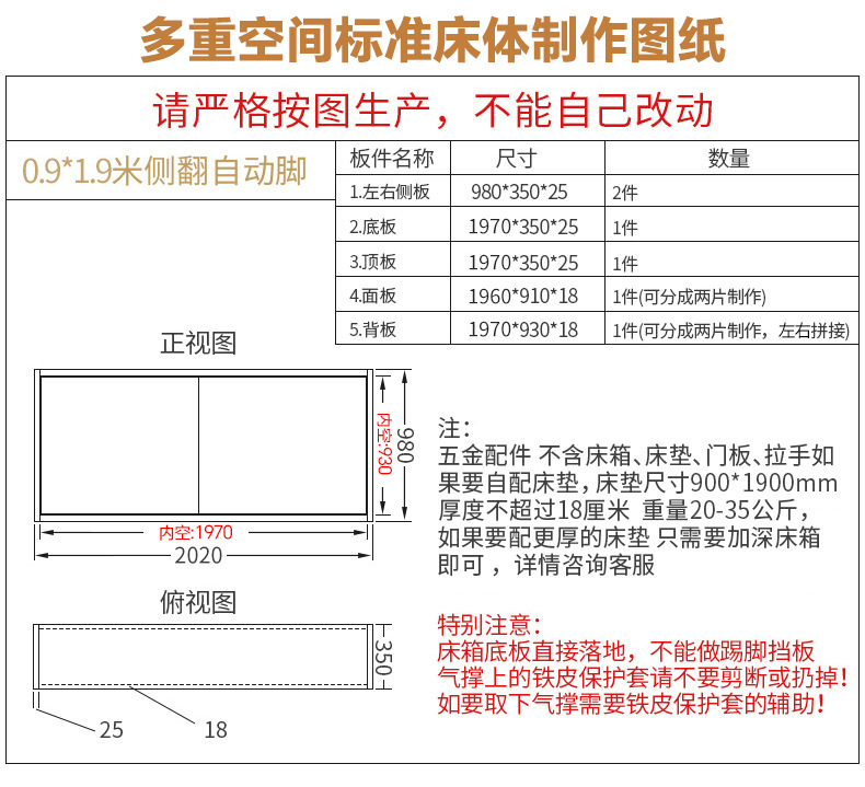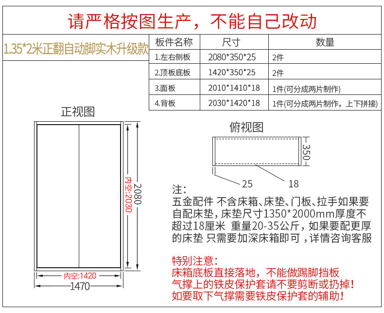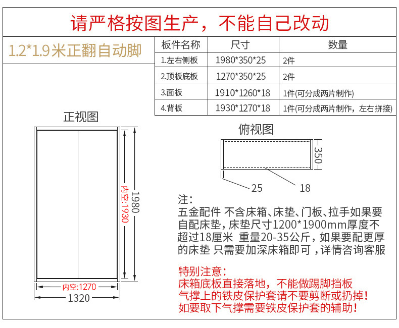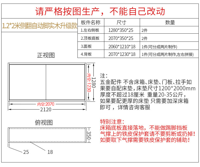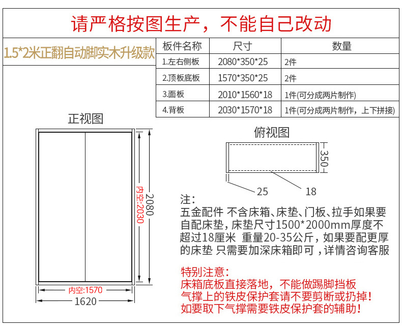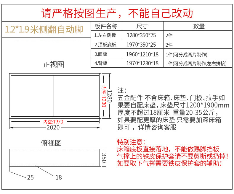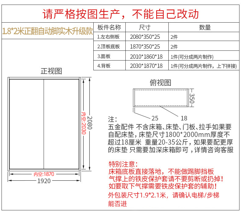 • 강화 및 업그레이드 모델-1.8* 2.0m [전면 플립] [4개의 용골 + 10cm 단단한 나무 갈비 스트립] 하드웨어 액세서리