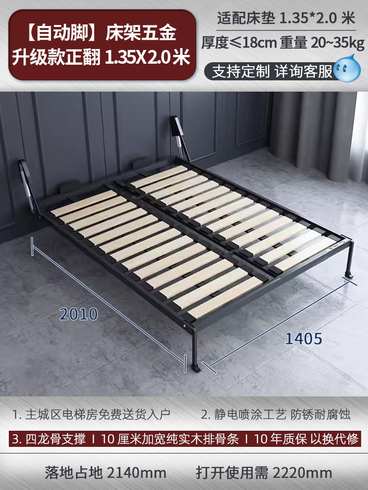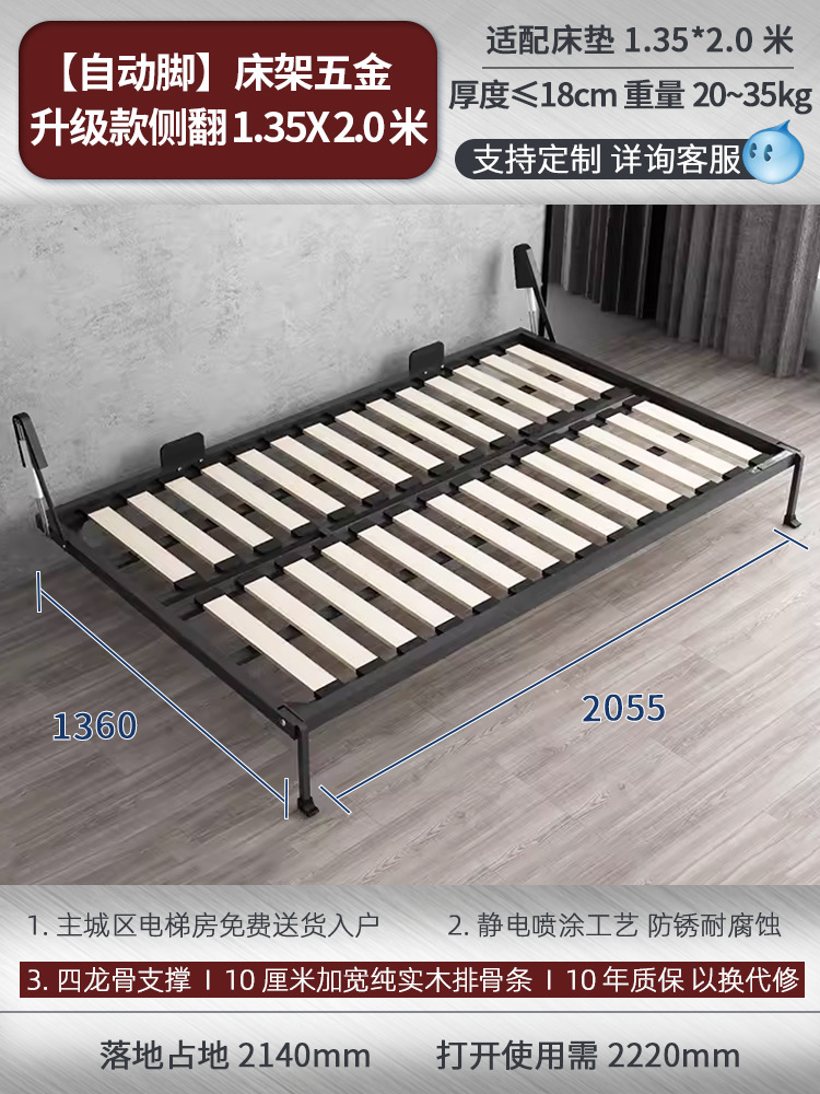 • 강화 및 업그레이드 모델-1.35* 1.9m [전면 플립] [4개의 용골 + 10cm 단단한 나무 갈비 스트립] 하드웨어 액세서리