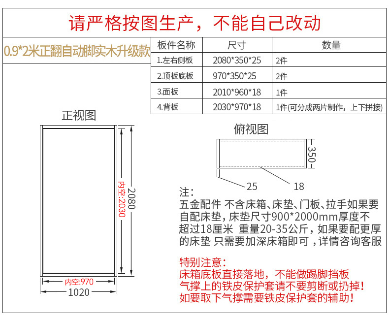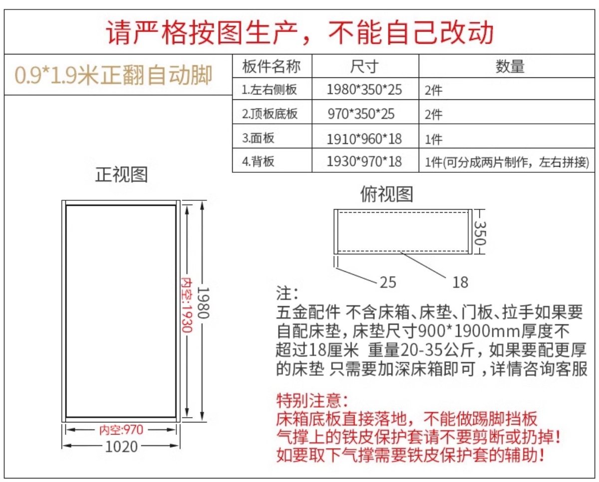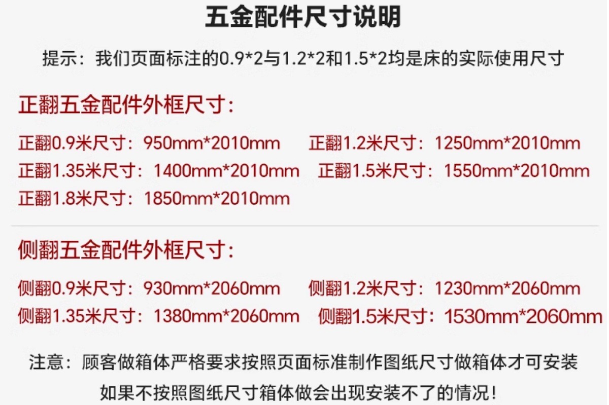 • 강화 및 업그레이드 모델-0.9* 1.9m [전면 플립] [강화 용골 + 10cm 원목 갈비 스트립] 하드웨어 액세서리