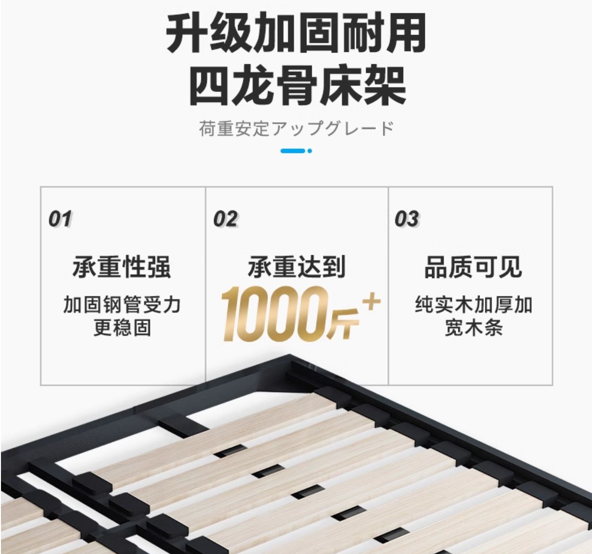 • 강화 업그레이드 모델-1.5* 2.0m [전면 플립] [4개의 용골 + 10cm 단단한 나무 갈비 스트립] 하드웨어 액세서리 + 황마 스프링 매트리스