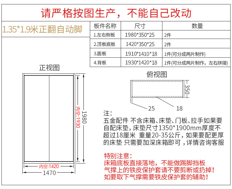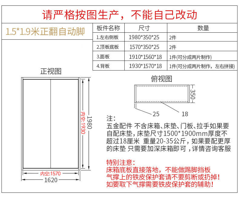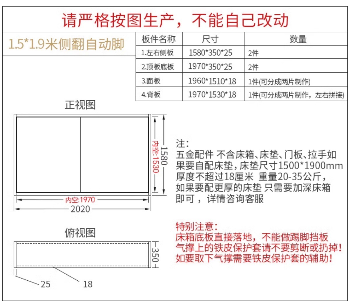 • 강화 업그레이드 모델-1.5* 1.9m [전면 플립] [4개의 용골 + 10cm 단단한 나무 갈비 스트립] 하드웨어 액세서리