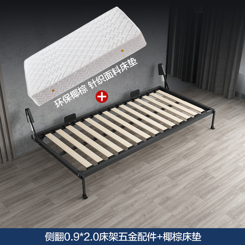 • 강화 업그레이드 모델-0.9* 2.0m [전면 플립] [10cm 원목 갈비 스트립] 하드웨어 액세서리 + 황마 스프링 매트리스