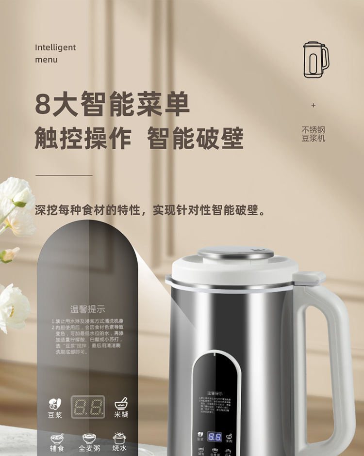110V 미국 표준 두유 기계 가정용 완전 자동 새로운 다기능 주스 미니 소형 스테인레스 스틸 벽 깨는 기계스토어 가기
