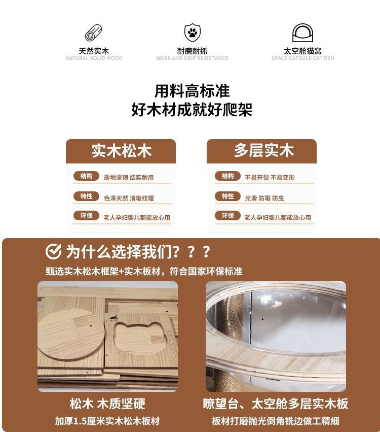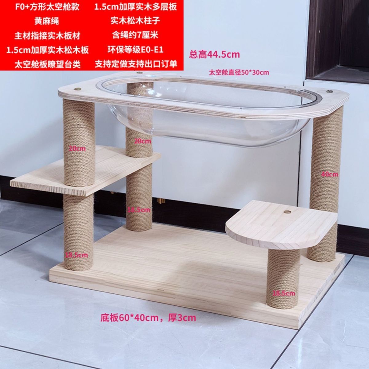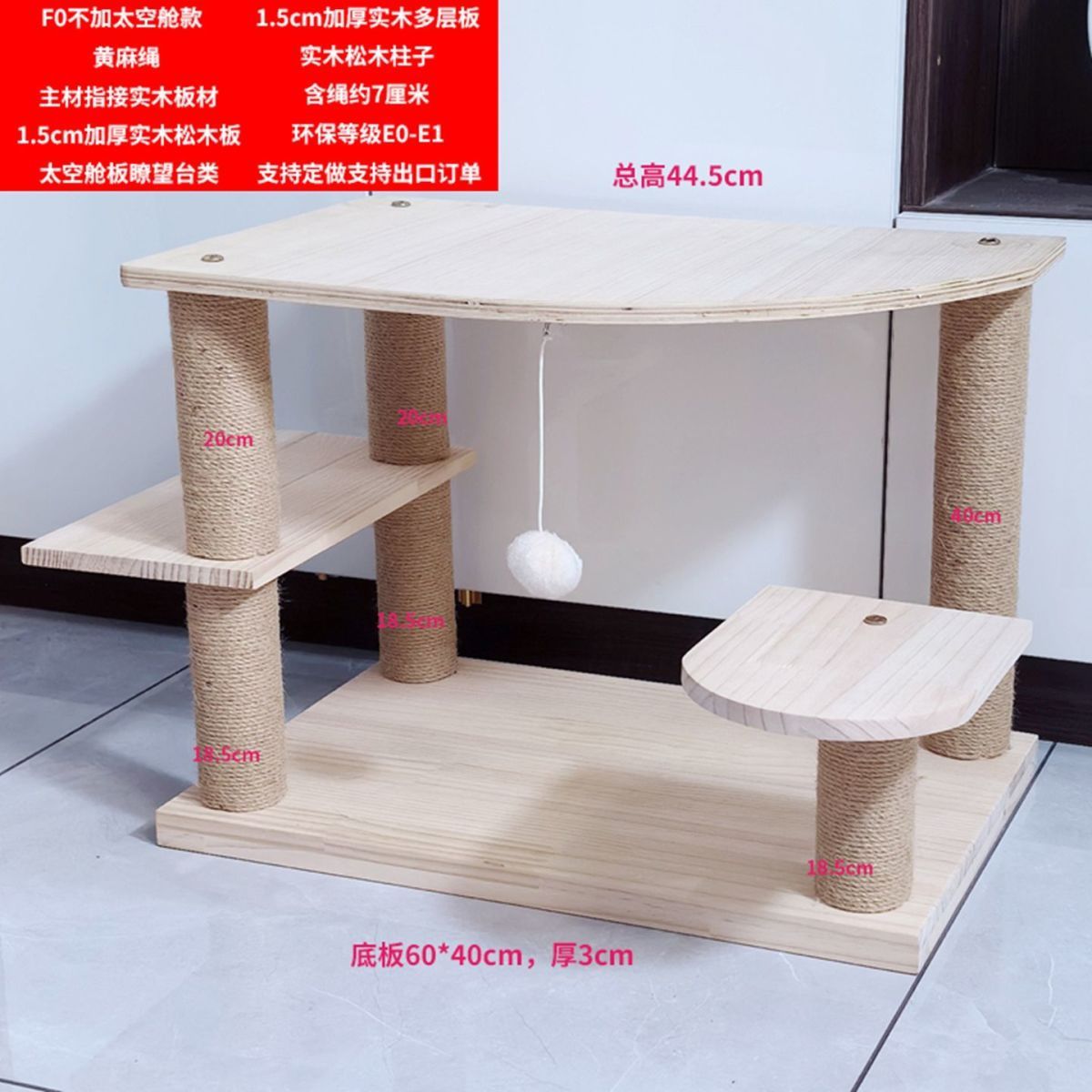 모든 단단한 나무 1.5cm 두꺼운 판재 작은 가정용 바닥에 세워진 나무 기둥 강한 고양이 등반 프레임 낮은 발 새끼 고양이 나무 둥지 통합
