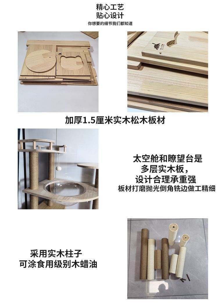 모든 단단한 나무 1.5cm 두꺼운 판재 작은 가정용 바닥에 세워진 나무 기둥 강한 고양이 등반 프레임 낮은 발 새끼 고양이 나무 둥지 통합스토어 가기