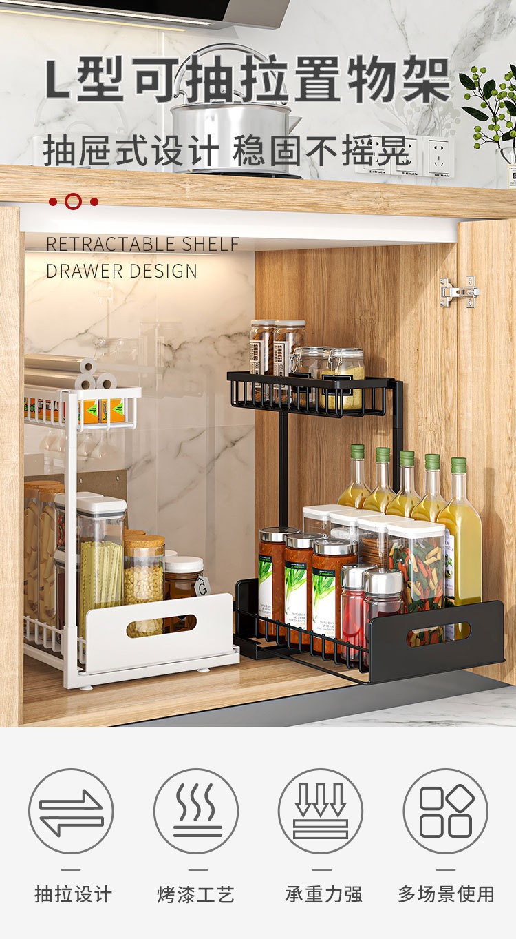 주방 싱크대 아래 수납 선반, 가정용 풀아웃 조미료 선반, 조리대 이중 캐비닛 수납 선반