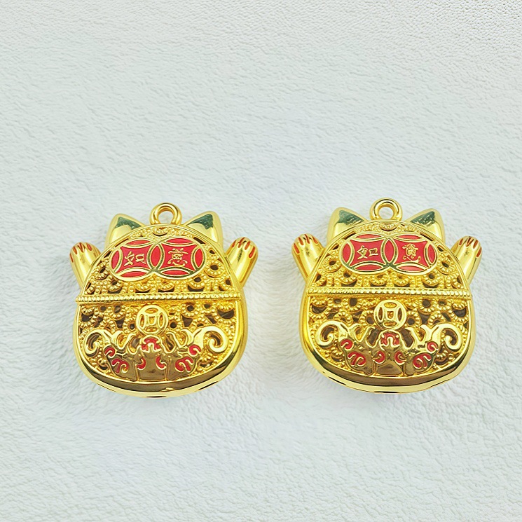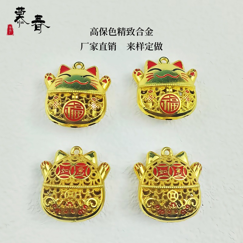 간단한 안전 행운의 고양이 자동차 키 체인 펜던트 귀여운 행운의 고양이 황금색 구리 버클 키 체인스토어 가기