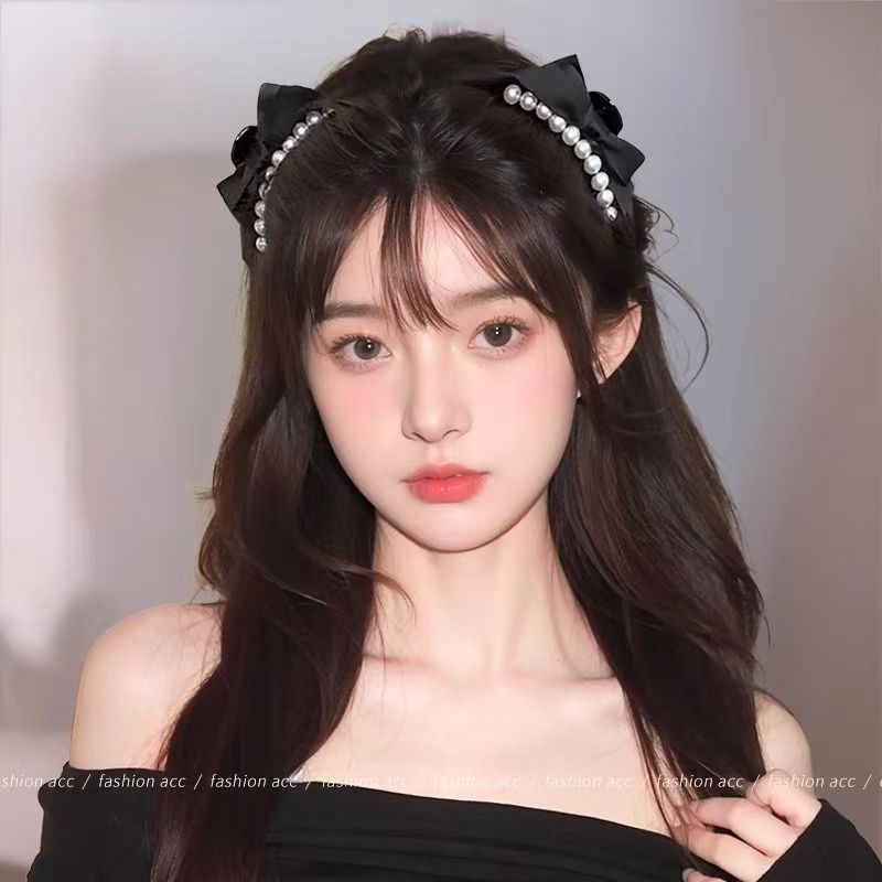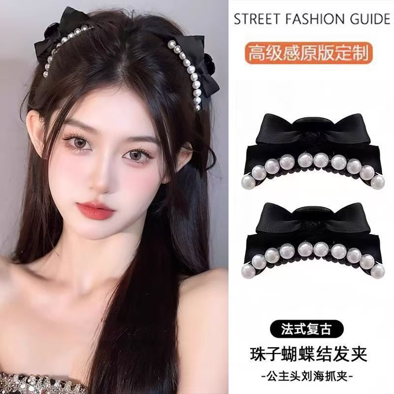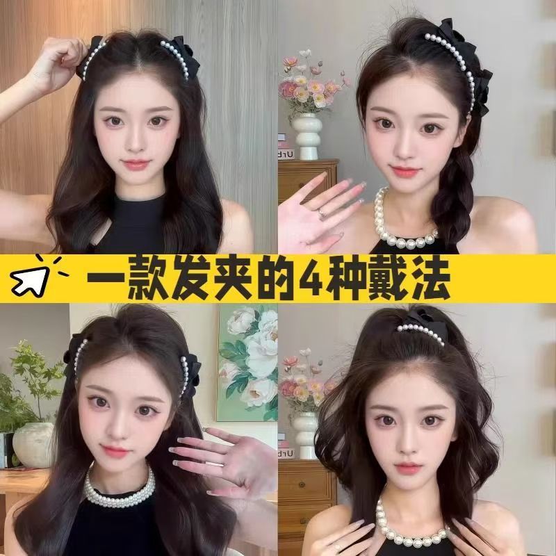 진주 리본 머리핀 여성용 이마 작은 집게핀 옆머리 클립 헤어 액세서리 머리핀 잔머리 손상 없이스토어 가기