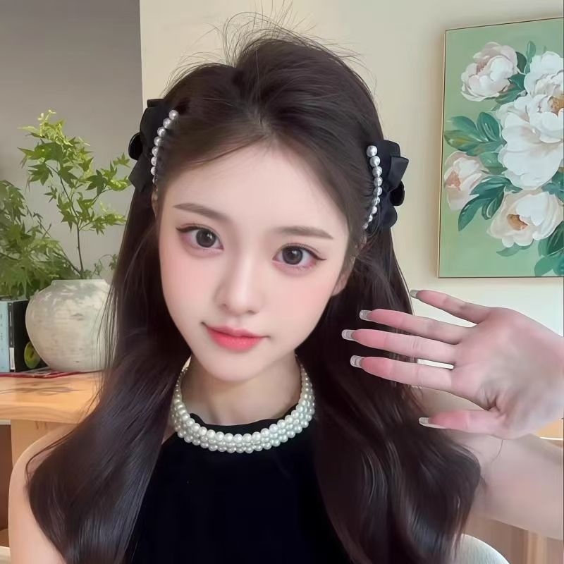 진주 리본 머리핀 여성용 이마 작은 집게핀 옆머리 클립 헤어 액세서리 머리핀 잔머리 손상 없이