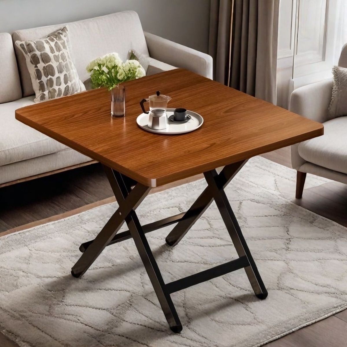 • [핫셀링 모델 구매] 블랙 월넛 + 블랙 사각 튜브 안정 다리 [60X60X51CM]
