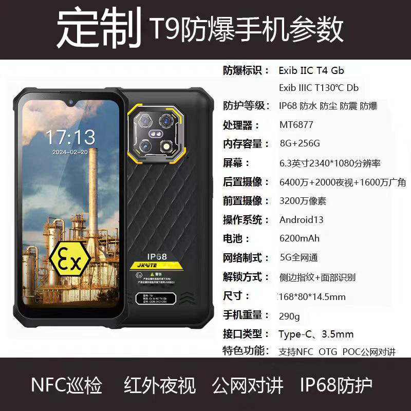 석유화학공장용 방폭형 스마트폰, 석유특수 EX 방수 삼방향 인터콤, 적외선 안전 5G 풀 네트워크 통신