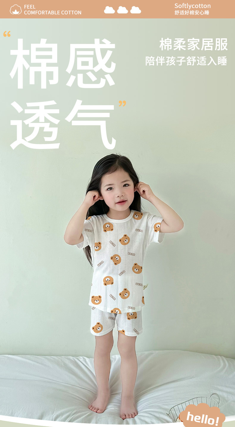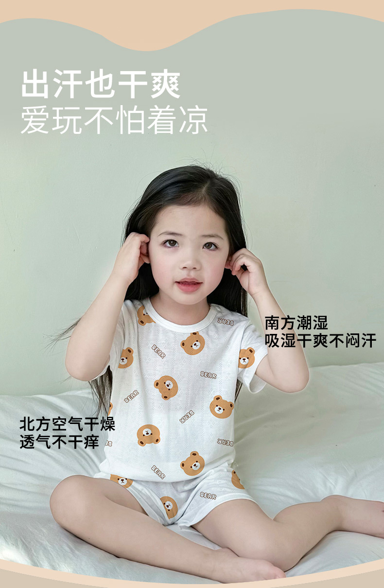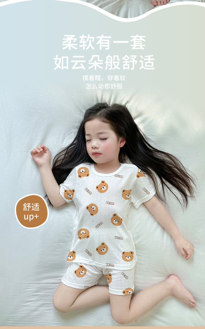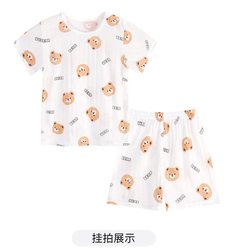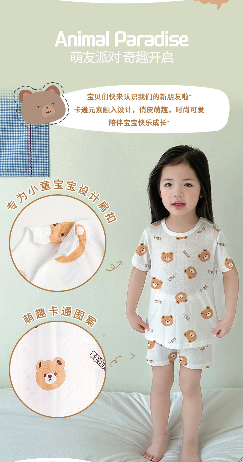 아동용 잠옷, 여름용 얇은 반팔 반바지, 초박형 대나무 섬유 가정복, 중대형 아동용 남아 및 여아용 에어컨 의류스토어 가기