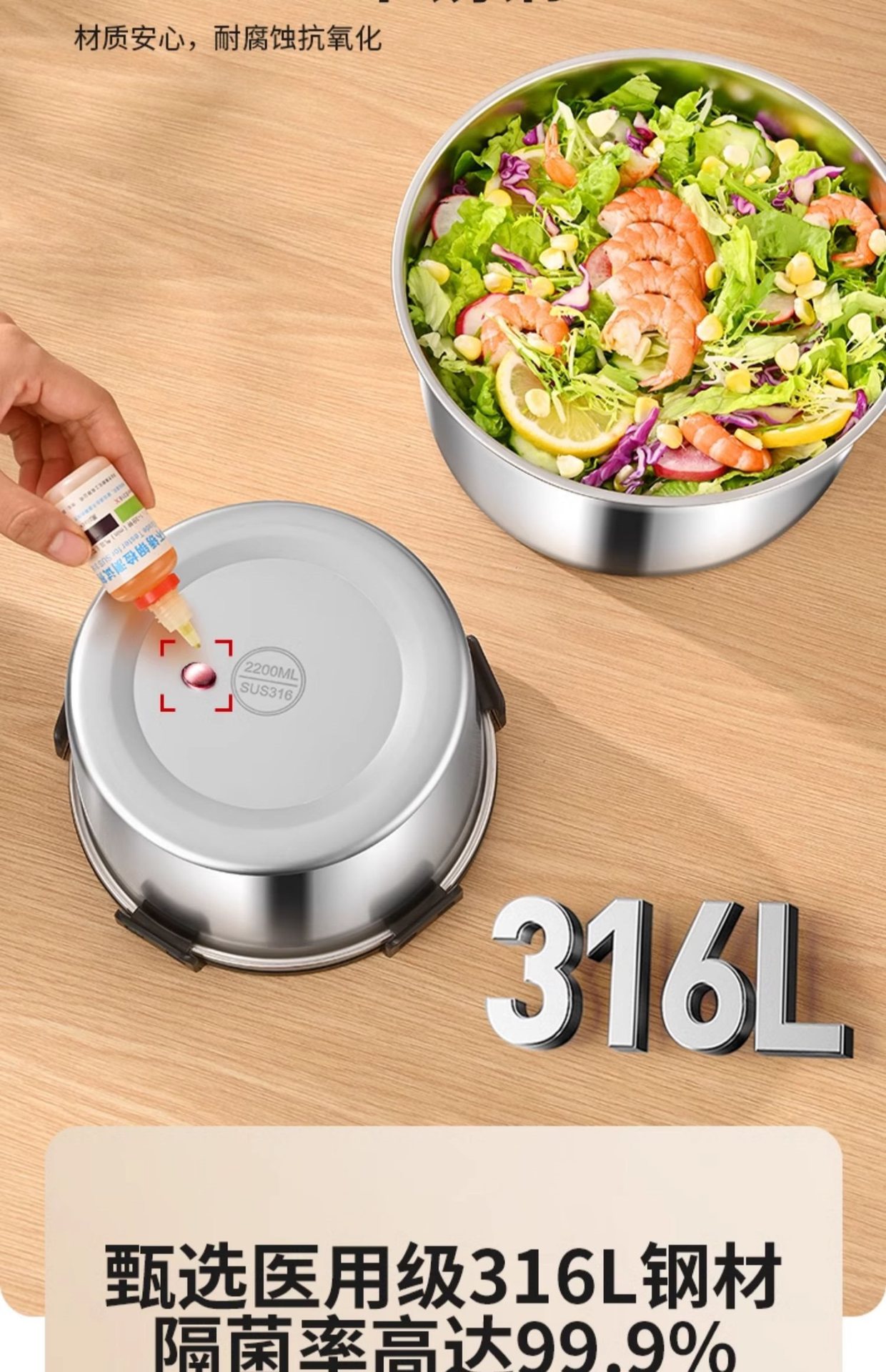 316 스테인레스 스틸 크리스퍼 밀봉 도시락 직장인 인스턴트 국수 그릇 포장 상자 뚜껑이있는 둥근 수프 그릇스토어 가기