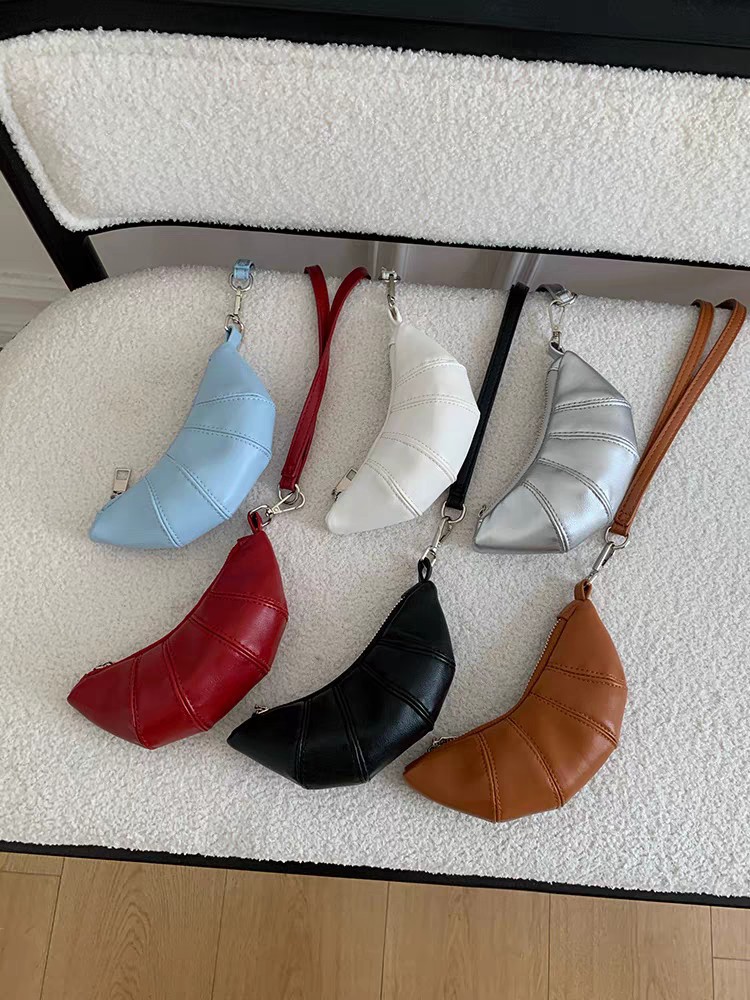외부 홀터넥 미니 동전 지갑, 귀여운 크로아상 디자인, 틈새 미니 립스틱 이어폰 가방스토어 가기