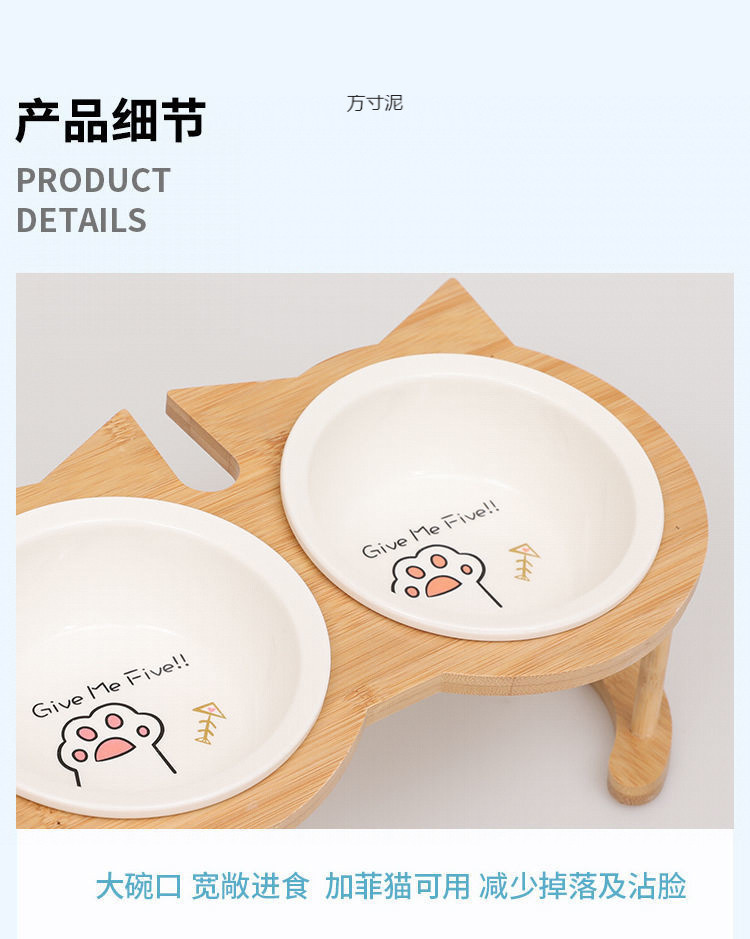 세라믹 고양이 그릇, 높은 발, 목 보호대, 이중 그릇 고정 랙, 뒤집힘 방지 애완 동물 고양이 및 개 먹이 그릇, 물 그릇, 기울어진 고양이 용품스토어 가기