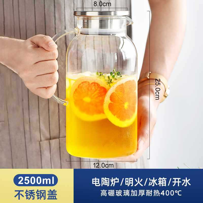냉수병, 유리 냉수병, 대용량 차 주전자, 가정용 고온 방지 뜨거운 물 컵, 여름 주전자스토어 가기